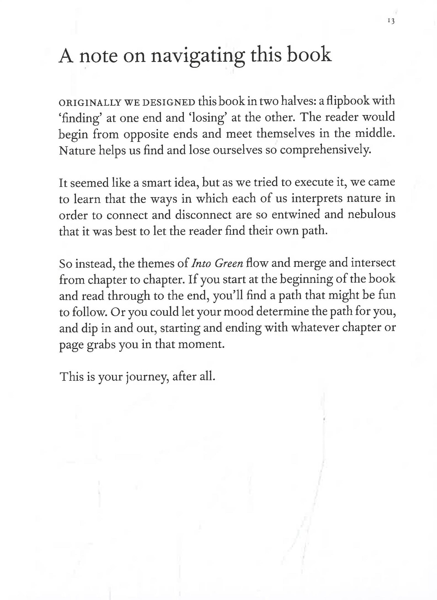 Into Green is a meditative and engaging guide to help us reconnect with nature and tune in to the natural world around us