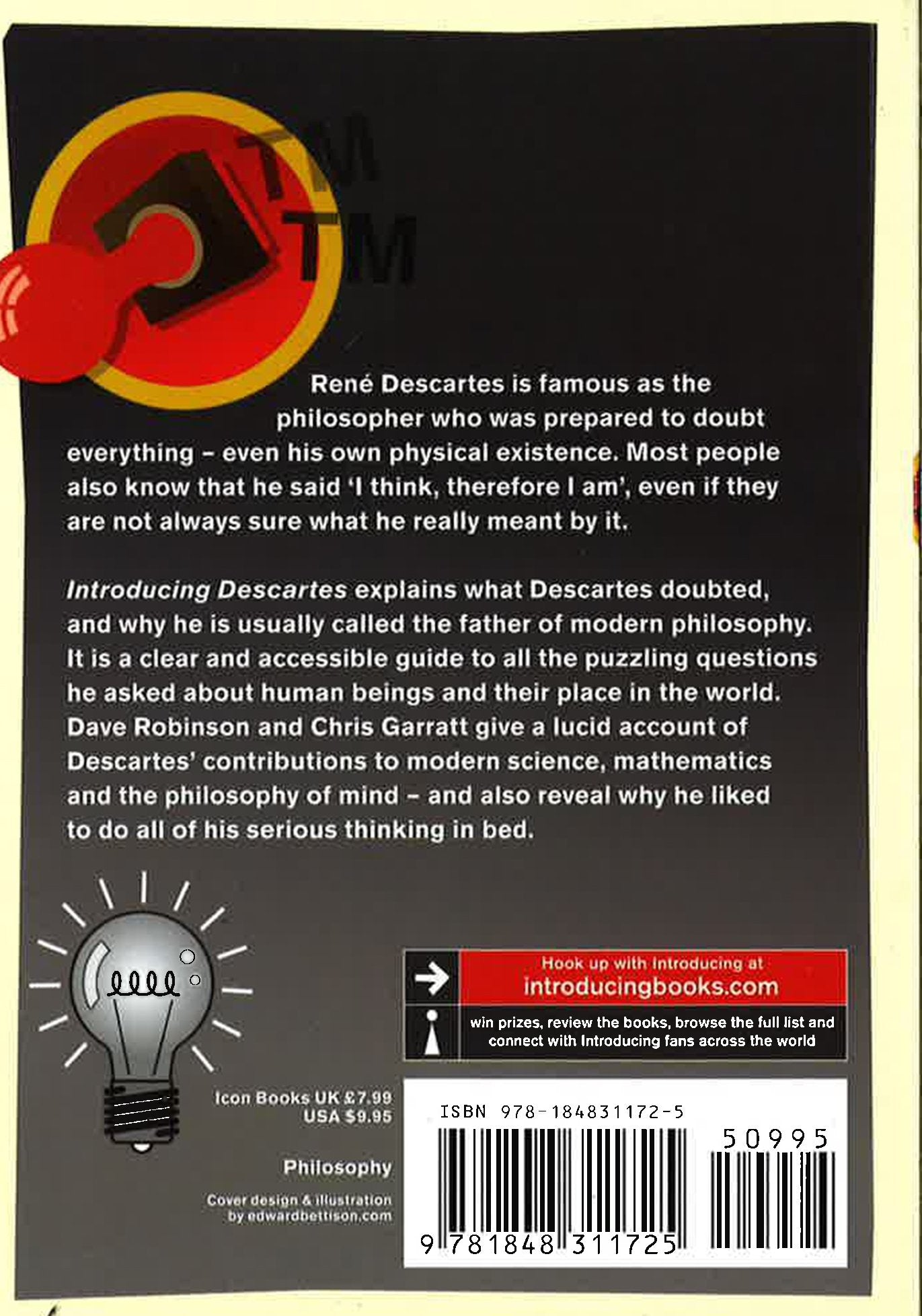 Rene Descartes is famous as the philosopher who was prepared to doubt everything- even his own physical existence. Most people also know that he said 'I think, therefore I am', even if they are not always sure what he really meant by it. Introducing Descartes explains what Descartes doubted, and why he is usually called the father of modern philosophy. It is a clear and accessible guide to all the puzzling questions he asked about human beings and their place in the world. Dave Robinson and Chris Garratt give a lucid account of Descartes' contributions to modern science, mathematics, and the philosophy of mind- and also reveal why he liked to do all of his serious thinking in bed.