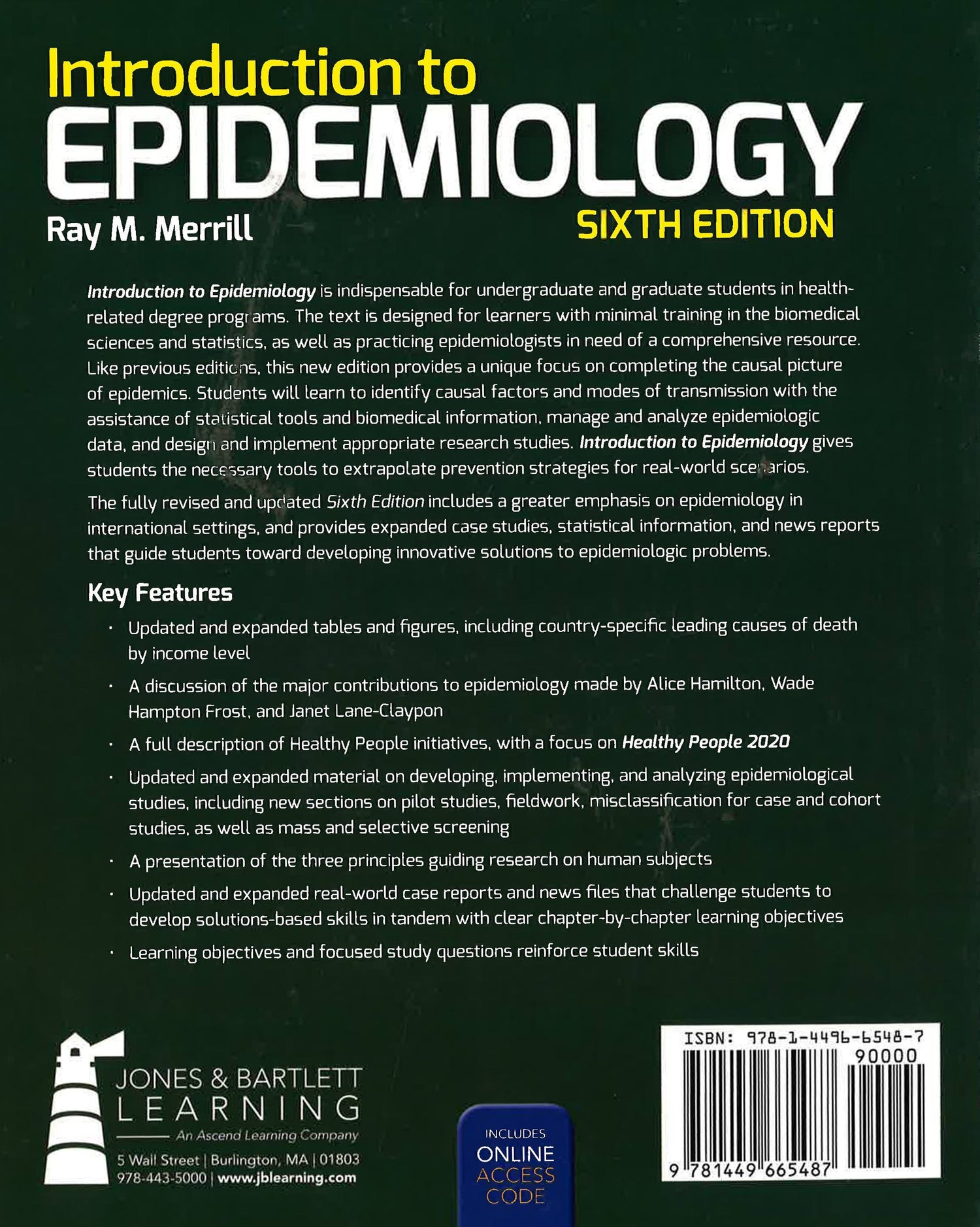 Introduction to Epidemiology, Sixth Edition is the ideal introductory text for the epidemiology student with minimal training in the biomedical sciences and statistics. With updated tables, figures, and examples throughout, the Sixth Edition is a thorough revision that offers an all new, real world examples to help better illustrate elusive concepts. Learning objectives, as well as study questions with descriptive answers, in each chapter engage the student in further analysis and reflection.