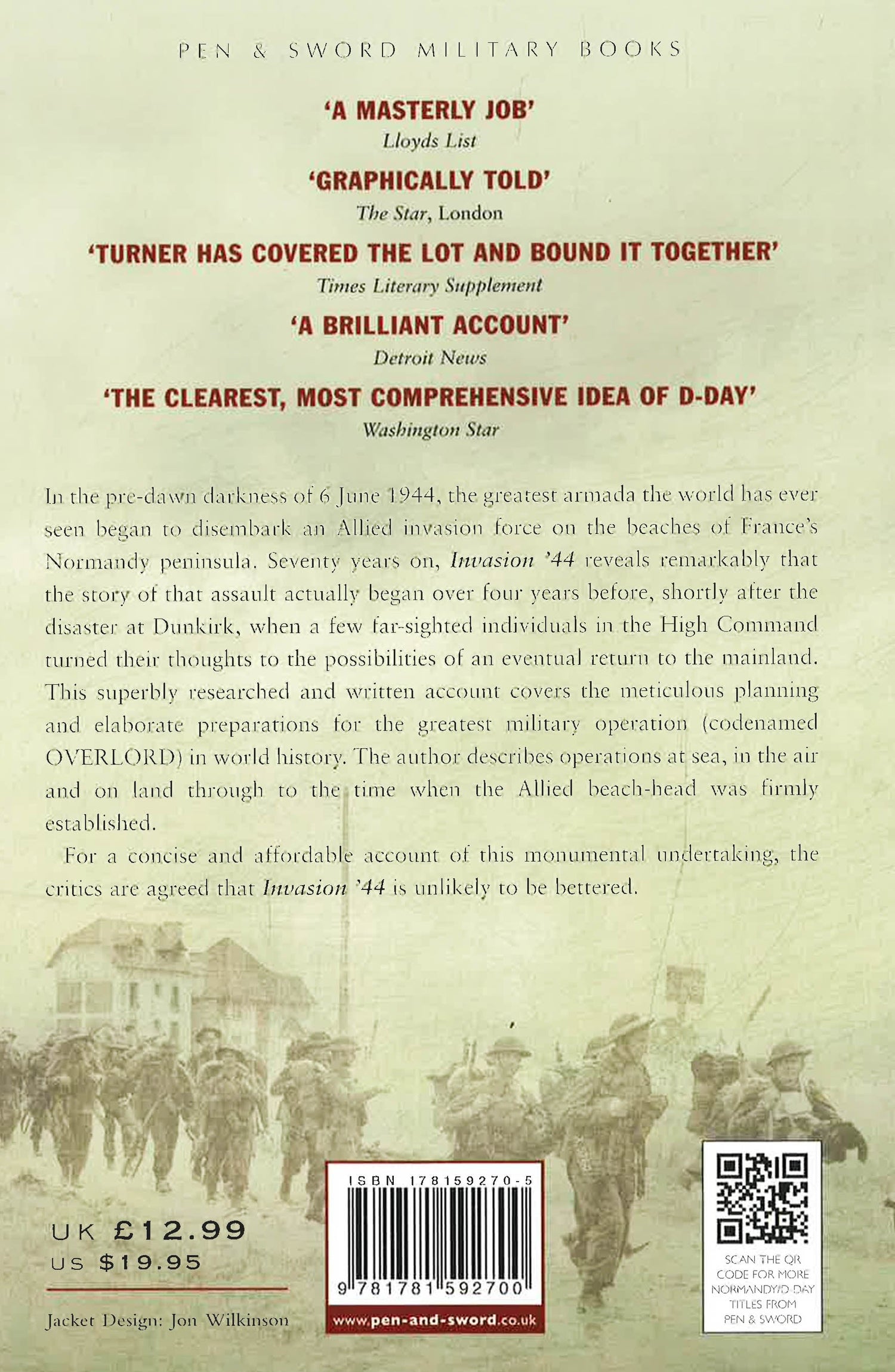 In the pre-dawn darkness of 6 June 1944, the greatest armada the world has ever seen began to disembark an Allied invasion force on the beaches of France's Normandy peninsula. Invasion '44 tells the story of that assault from the day over four years earlier, and only a few short weeks after the British disaster at Dunkirk, when a few individuals in the High Command began to turn their thoughts to the possibilities of an eventual return to the mainland, and the story continues up to the time when the Allied beach-head was firmly established on French soil. As the battle progresses, the reader is allowed to view each successive wave as it lands, follow the developing battle line inland, and keep an eye on the vital battles also developing on and beneath the seas off the Normandy peninsula and in the skies above it.