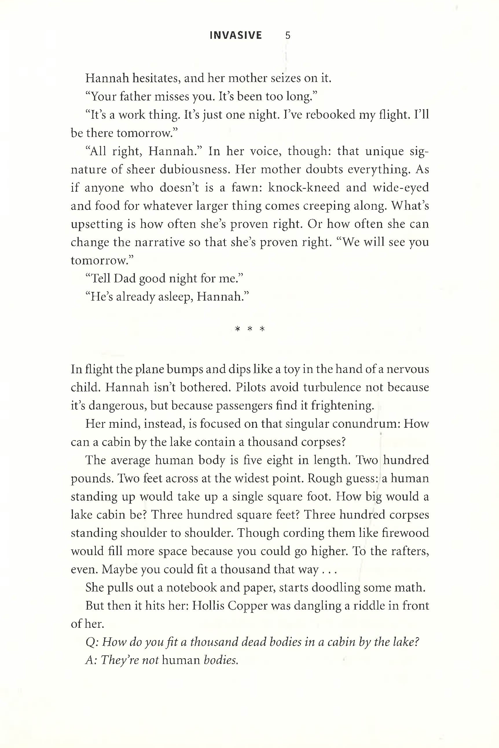 Hannah Stander is a consultant for the FBI - a futurist who helps the Agency with cases that feature demonstrations of bleeding-edge technology. It’s her job to help them identify unforeseen threats: hackers, AIs, genetic modification, anything that in the wrong hands could harm the homeland.Hannah is in an airport, waiting to board a flight home to see her family, when she receives a call from Agent Hollis Copper. “I’ve got a cabin full of over a thousand dead bodies,” he tells her. Whether those bodies are all human, he doesn’t say.What Hannah finds is a horrifying murder that points to the impossible - someone weaponizing the natural world in a most unnatural way. Discovering who - and why - will take her on a terrifying chase from the Arizona deserts to the secret island laboratory of a billionaire inventor/philanthropist. Hannah knows there are a million ways the world can end, but she just might be facing one she could never have predicted - a new threat both ancient and cutting-edge that could wipe humanity off the earth.