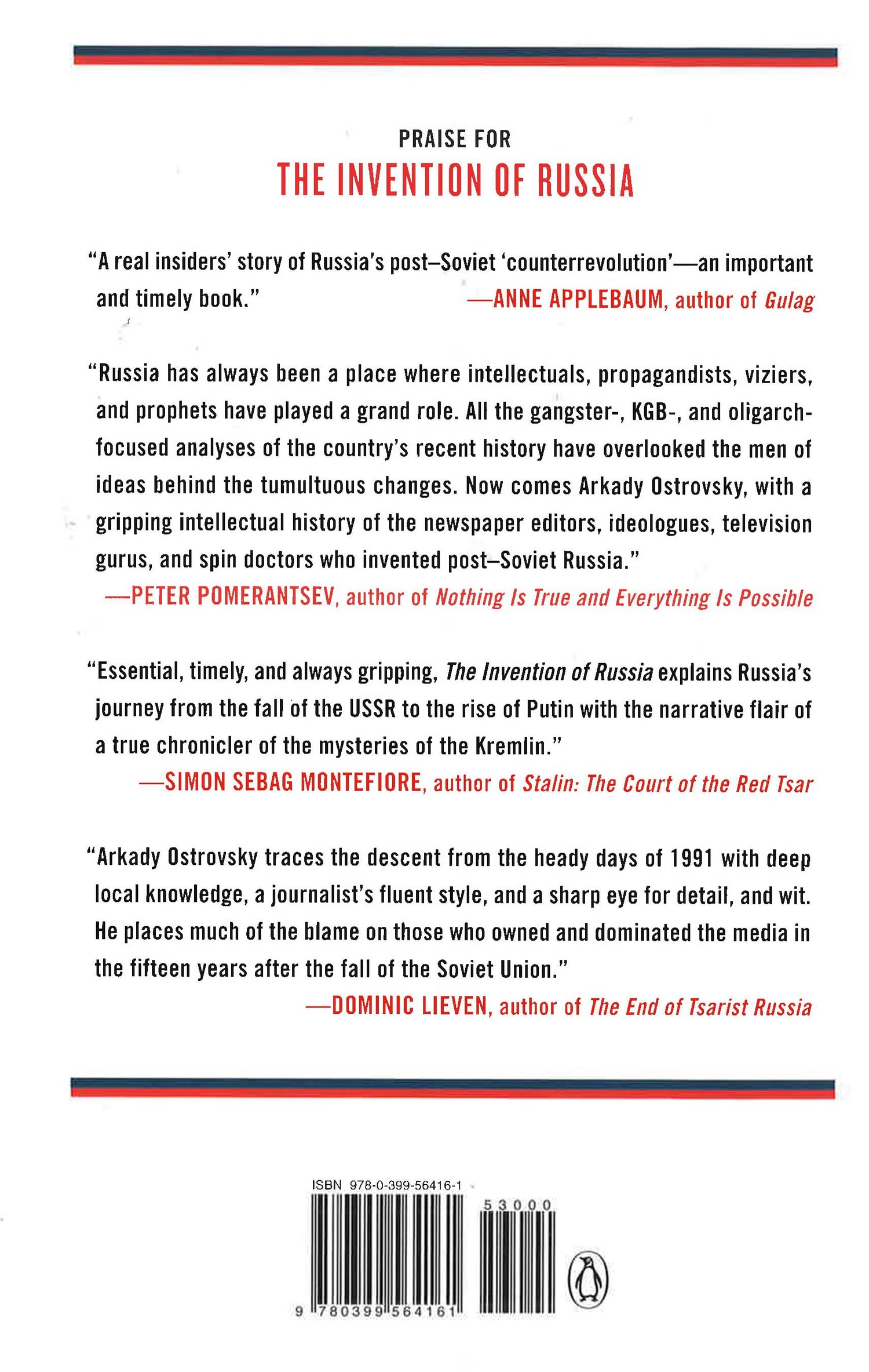 The breakup of the Soviet Union was a time of optimism around the world, but Russia today is actively involved in subversive information warfare, manipulating the media to destabilize its enemies. How did a country that embraced freedom and market reform 25 years ago end up as an autocratic police state bent once again on confrontation with America? A winner of the Orwell Prize, The Invention of Russia reaches back to the darkest days of the cold war to tell the story of Russia's stealthy and largely unchronicled counter revolution. A highly regarded Moscow correspondent for the Economist, Arkady Ostrovsky comes to this story both as a participant and a foreign correspondent. His knowledge of many of the key players allows him to explain the phenomenon of Valdimir Putin - his rise and astonishing longevity, his use of hybrid warfare and the alarming crescendo of his military interventions. One of Putin's first acts was to reverse Gorbachev's decision to end media censorship and Ostrovsky argues that the Russian media has done more to shape the fate of the country than its politicians. Putin pioneered a new form of demagogic populism --oblivious to facts and aggressively nationalistic - that has now been embraced by Donald Trump.