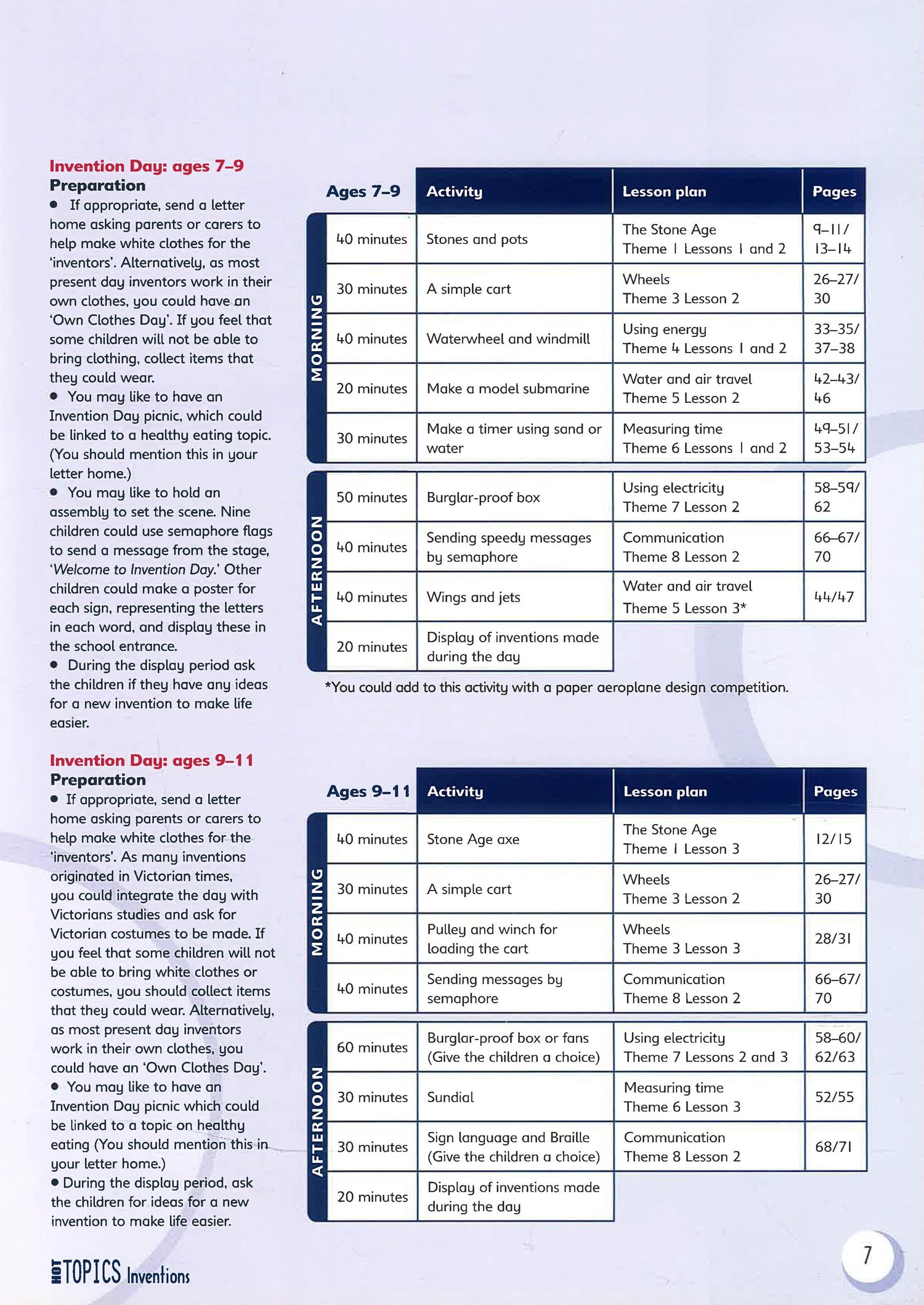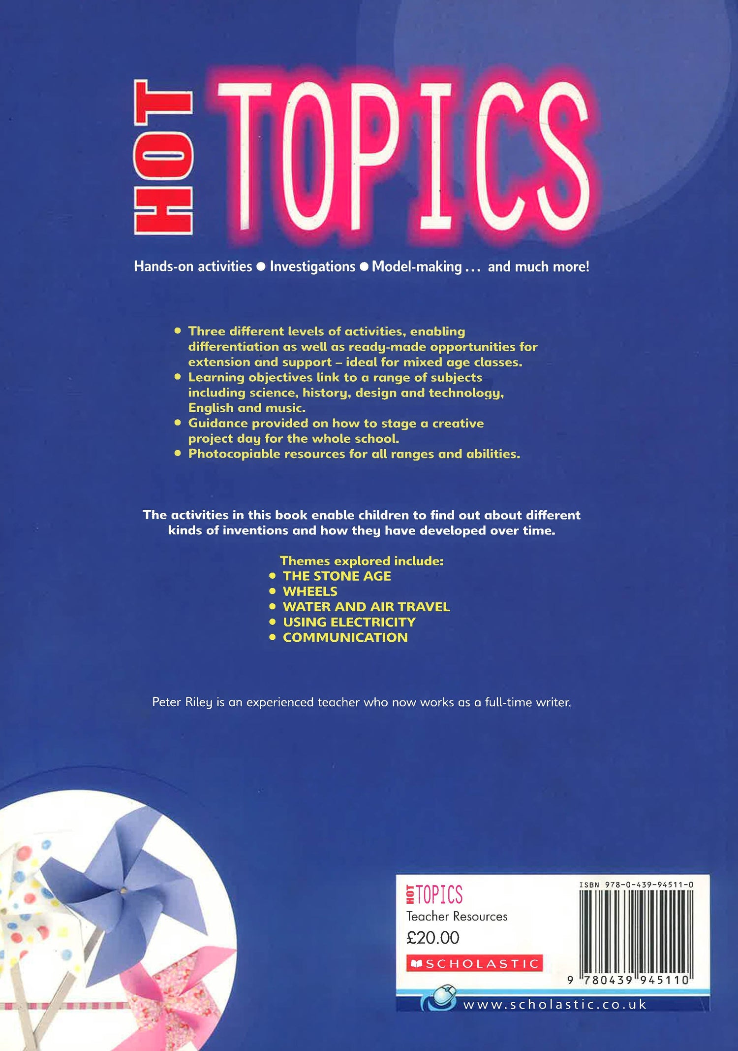 The topics covered in this series are specifically chosen to help children to develop a sense of 'awe and wonder'. They are topic that children and teachers love and now meet perfectly the need of a more creative curriculum. Each topic is closely keyed into the requirements of different subjects in the national curriculum to provide a cross-curricular project. The books can also be used to provide additional activities to topics and modules already established in a school to generate extra interest. Activities are provided for children aged from 5 to 11 - enabling teachers to find activities at a level suitable for all their children - extending the more able and supporting the less able. This also means that the books are ideal for teachers who have to teach mixed aged classes and enables topics to be used throughout the whole key stage or school. Children of all ages are fascinated by all aspects of inventions - when things were invented, who invented them,what first inventions were like and how they developed. This book shows how this natural enthusiasm for a topic can be used as a basis for investigative science work, historical study as well as a stimulus for designing and making work in D&T. Topics explored in this title include: simple machines; using energy; water and air travel; measuring time; and, using electricity.