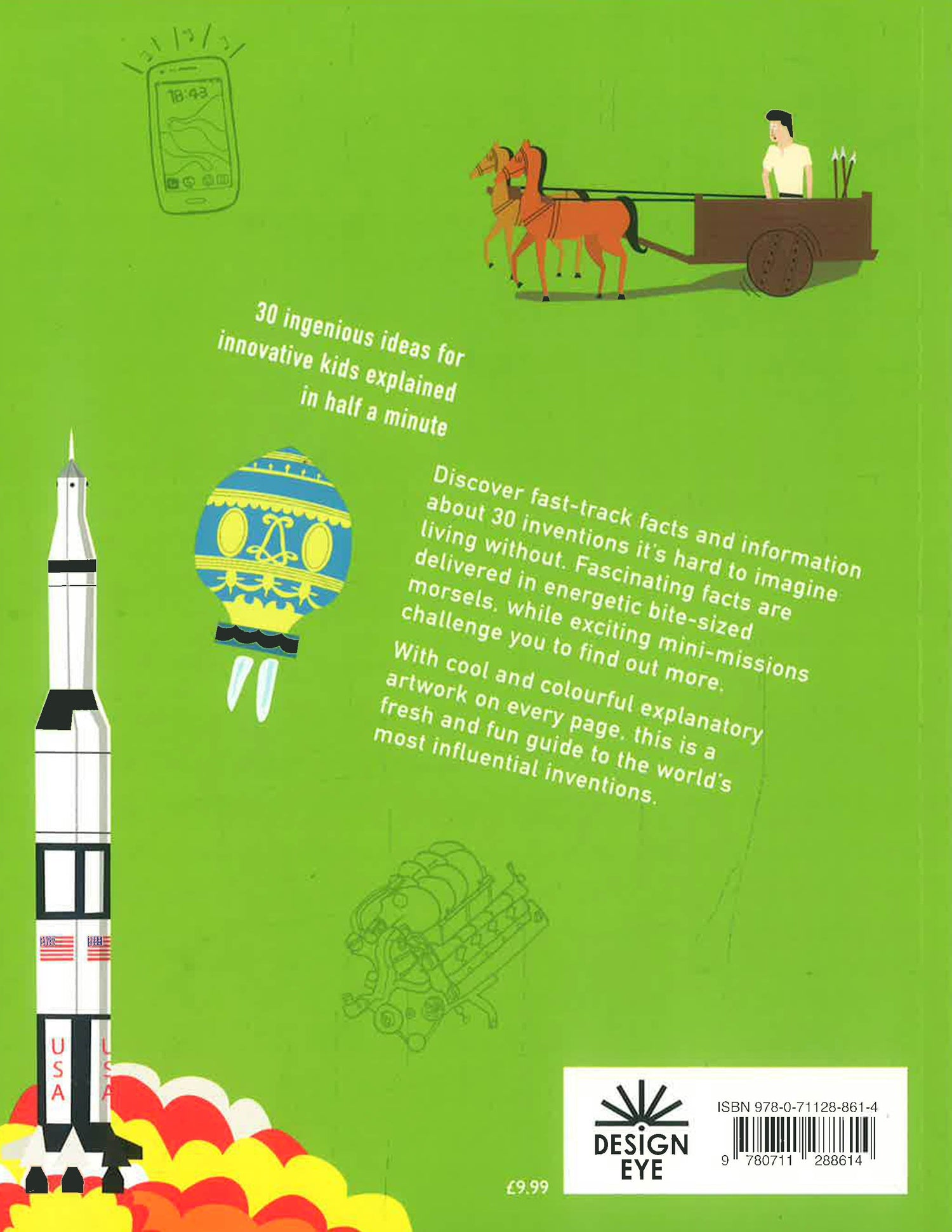 From the first flushing toilet to futuristic robots, Inventions in 30 Seconds explains how key inventions revolutionized the world. Delivered in an energetic, informative style, children will gain a better understanding of how everyday life has been shaped by great inventions. The 30 Seconds series takes readers on a journey of discovery through a wide range of fascinating subjects. Each topic is presented as a quick 30-second soundbite, supported by flash summaries and full-color artwork. Fun, interactive missions with things to make or do support the topics, encouraging readers to test, explore, and discover even more.