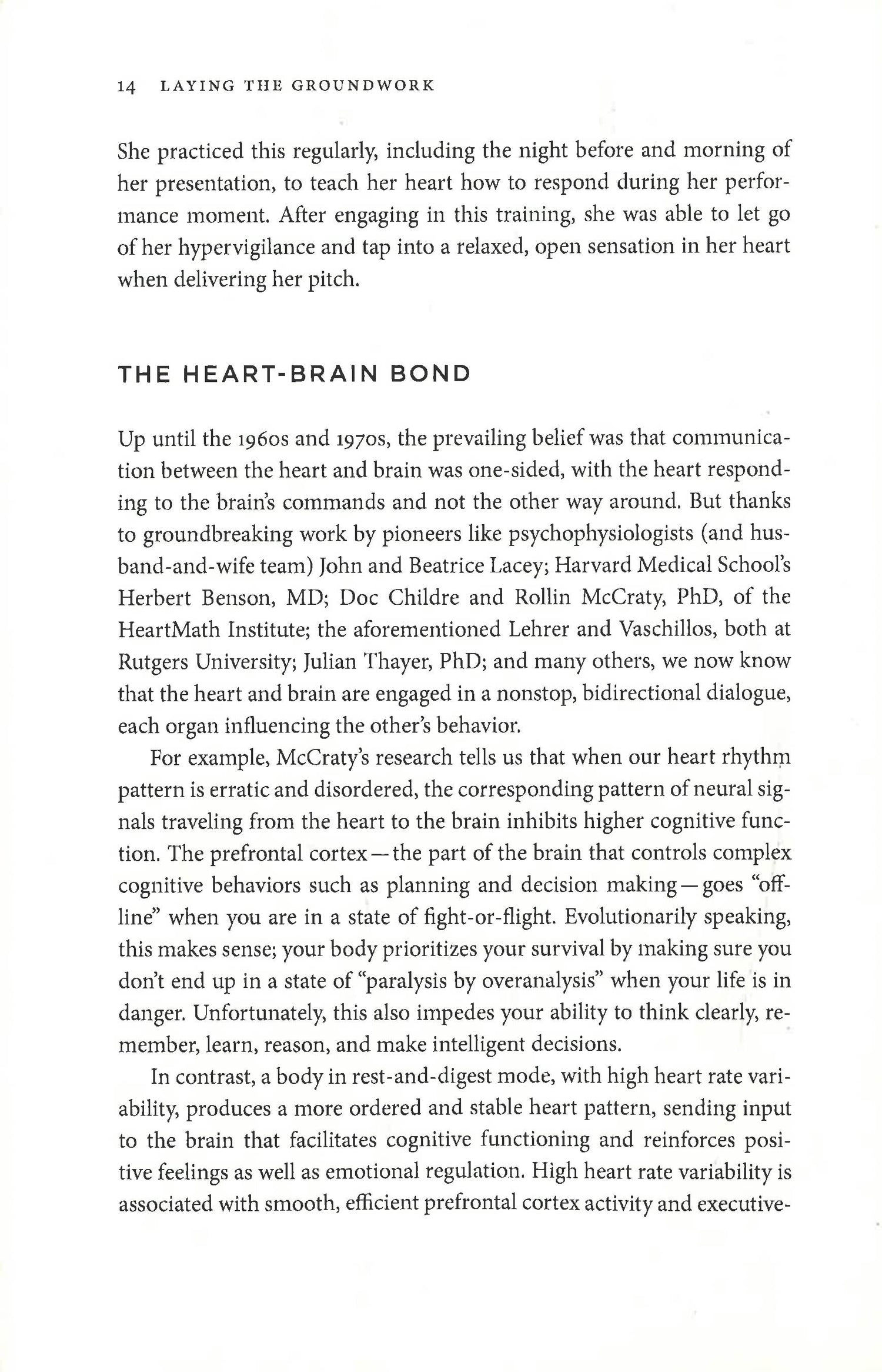 In this book, she shares with readers for the first time the same program that she uses with top athletes, CEOs, business leaders - anyone who wants and needs to perform at their best. What makes her scientifically proven ten-week programme unlike any other is that she recognises the link between heart rhythms and stress to create specific, clinically tested breathing techniques that allow you to control your body's physical response to stress. She pairs this training with cognitive-behavioural exercises to offer a two-tiered protocol for strengthening health and performance, enabling readers to respond more flexibly to stressful situations, let go of negative thoughts and emotions, and ultimately be more focused and confident under pressure.