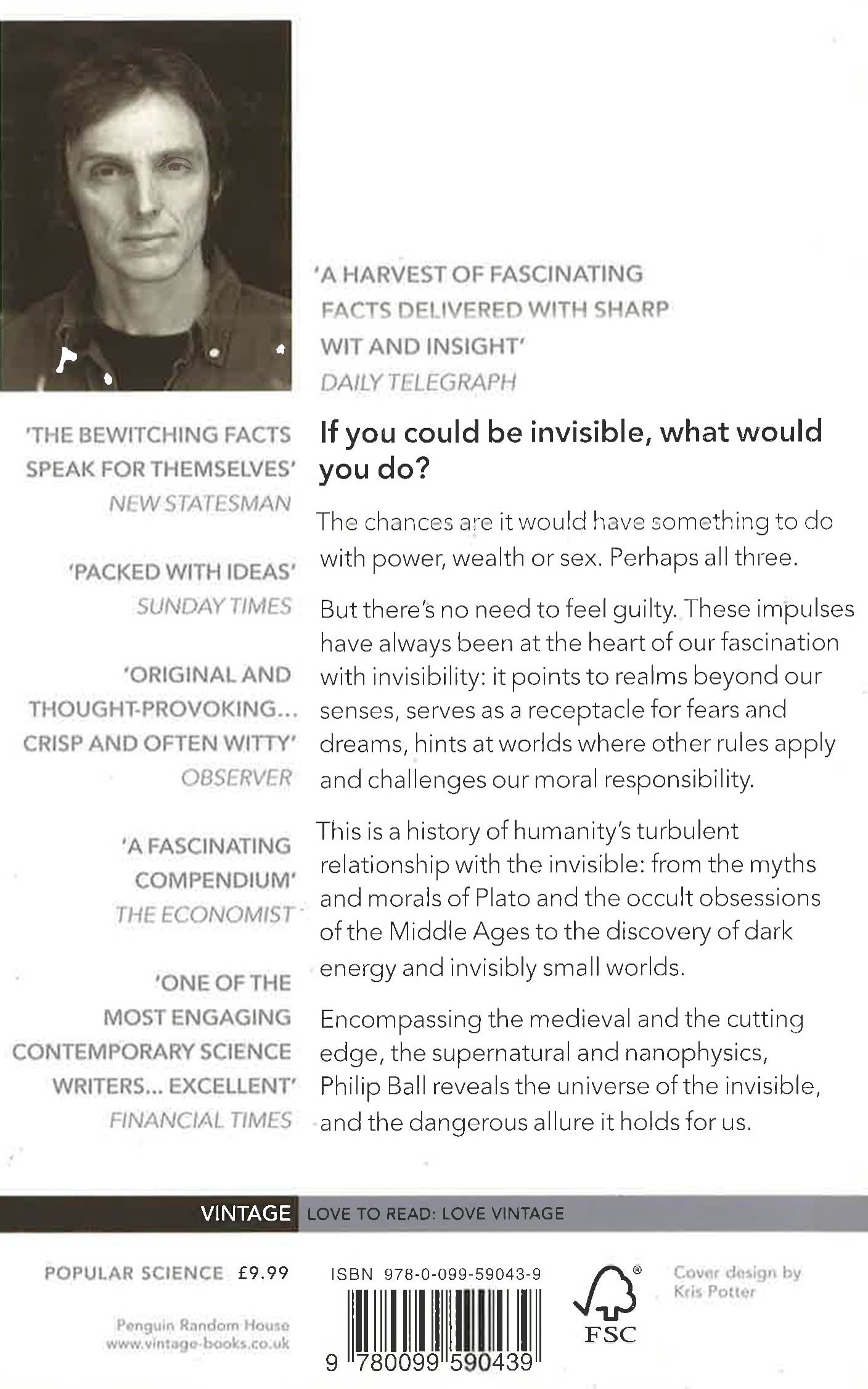 This is a history of humanity's turbulent relationship with the invisible. It takes on the myths and morals of Plato, the occult obsessions of the Middle Ages, the trickeries and illusions of stage magic, the auras and ethers of Victorian physics, military strategies to camouflage armies and ships and the discovery of invisibly small worlds.
