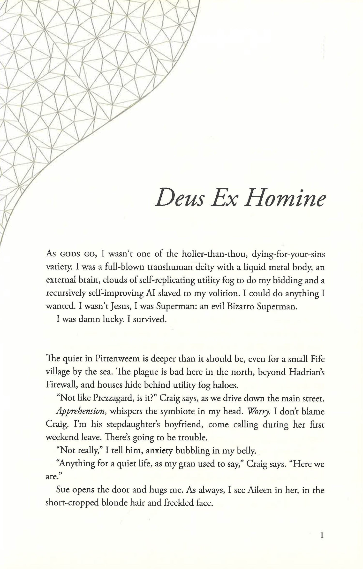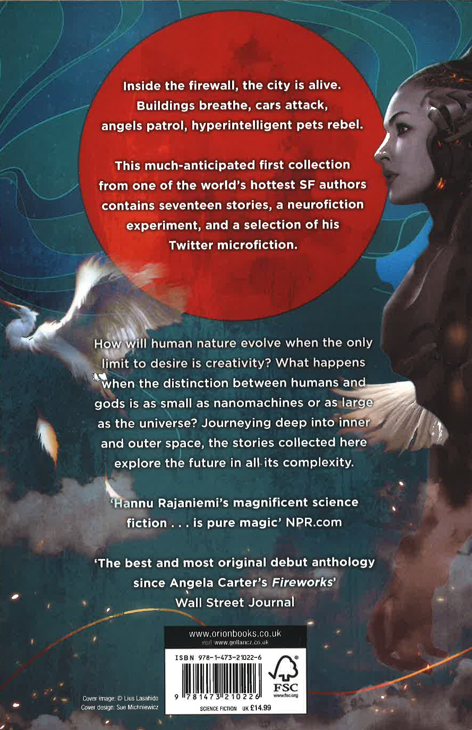 Inside the firewall, the city is alive. Buildings breathe, cars attack, angels patrol, hyper intelligent pets rebel.This much-anticipated fist collection from one of the world's hottest SF authors contains seventeen stories, a neurofiction experiment, and a selection of his Twitter microfiction.How will human nature evolve when the only limit to desire is creativity? What happens when the distinction between humans and gods is as small as nanomachines or as large as the universe? Journeying deep into inner and outer space, the stories collected here explore the future in all its complexity.