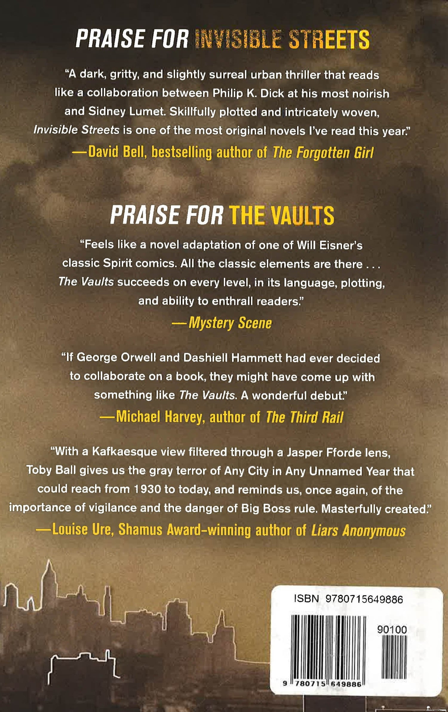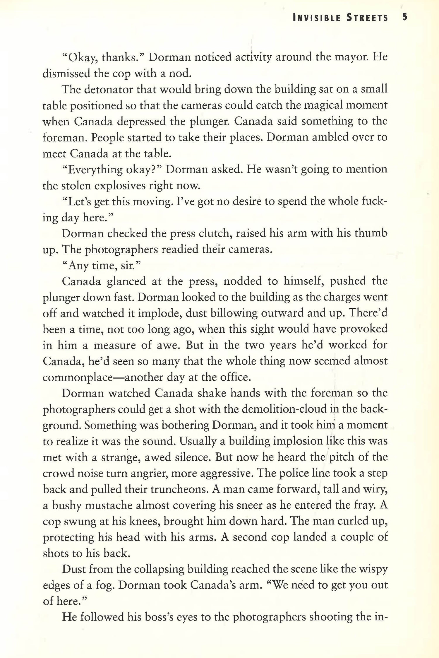 The year is 1965, and the City is a hulking shell of itself. Bohemians, crooks, and snarling anti-Communists have their run of the place, but if Nathan Canada has his way, all this decline and decadence will soon be nothing but a distant memory. His New City Project will paper over the grit and the grime, making the City safe for the rich. For Canada and his influential allies, the Project is the City's last best hope-but according to everyone else in town, it's a death knell. So when the Project's cache of explosives goes missing, everyone is a suspect, and police detective Torsten Grip finds himself up against a ticking clock and a wall of silence. Meanwhile journalist Frank Frings, the last honest man in the City, sets out to find his friend's grandson, who has gotten himself involved with Kollectiv 61, a radical group that Grip believes holds the key to the investigation. A cinematic journey through a city down on its luck and a gripping story all the way up to its shocking conclusion, Invisible Streets will leave you awed and breathless.