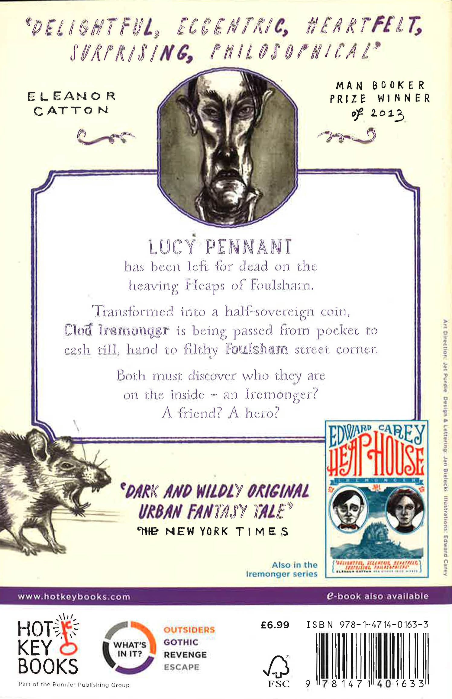 Roald Dahl by way of Charles Dickens' - Vox.com Dark, gothic and delightfully macabre, the Iremonger family return... Foulsham, London's great filth repository, is bursting at the seams. The walls that keep the muck in are buckling, rubbish is spilling over the top, back into the city that it came from. In the Iremonger family offices, Grandfather Umbitt Iremonger broods: in his misery and fury at the people of London, he has found a way of making everyday objects assume human shape, and turning real people into objects. Abandoned in the depths of the Heaps, Lucy Pennant has been rescued by a terrifying creature, Binadit Iremonger - more animal than human. She is desperate and determined to find Clod. But unbeknownst to her, Clod has become a golden sovereign and is 'lost'. He is being passed as currency from hand to hand all around Foulsham, and yet everywhere people are searching for him, desperate to get hold of this dangerous Iremonger, who, it is believed, has the power to bring the mighty Umbitt down. But all around the city, things, everyday things, are twitching into life...