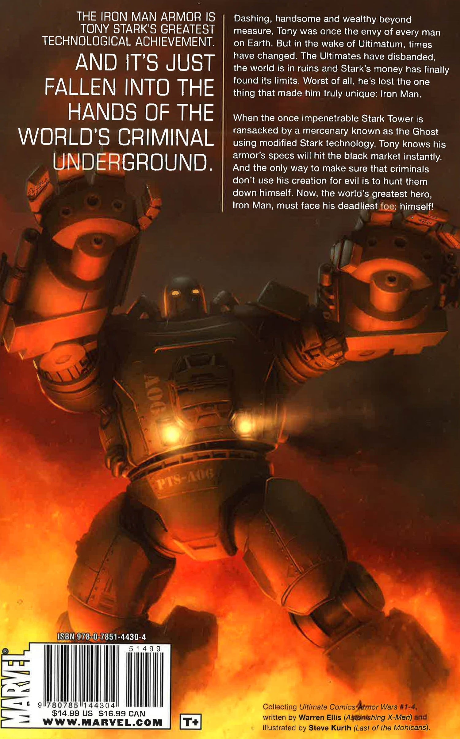 Exploding from the ruins of ULTIMATUM, Tony Stark races against time to save his crippled corporation and stop the theft of his armored arsenal! Superstar writer WARREN ELLIS (ULTIMATE HUMAN) teams up with rising talent STEVE KURTH (IRON MAN) to bring you a globe-spanning, high-octane thriller with a blast from Tony's past that you've gotta see to believe!