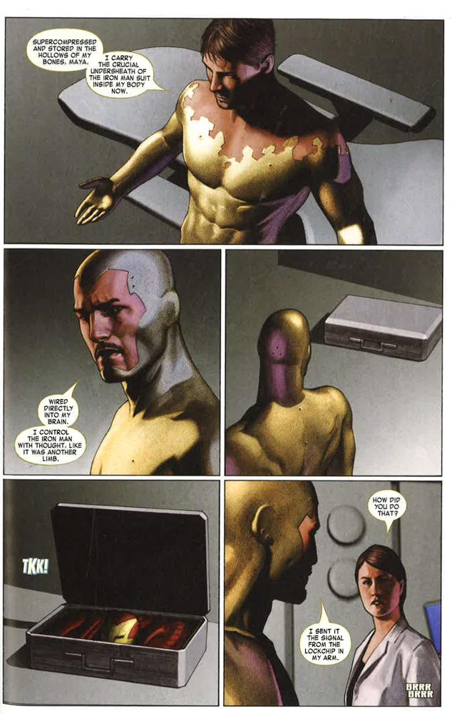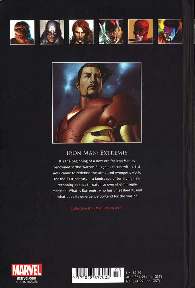 It?s the beginning of a new era for Iron Man as renowned scribe Warren Ellis joins forces with artist adi Granov to redefine the armoured Avengers world for the 21st century - a lanscape of terrifying new technologist that threaten to overwhelm fragile mankid!