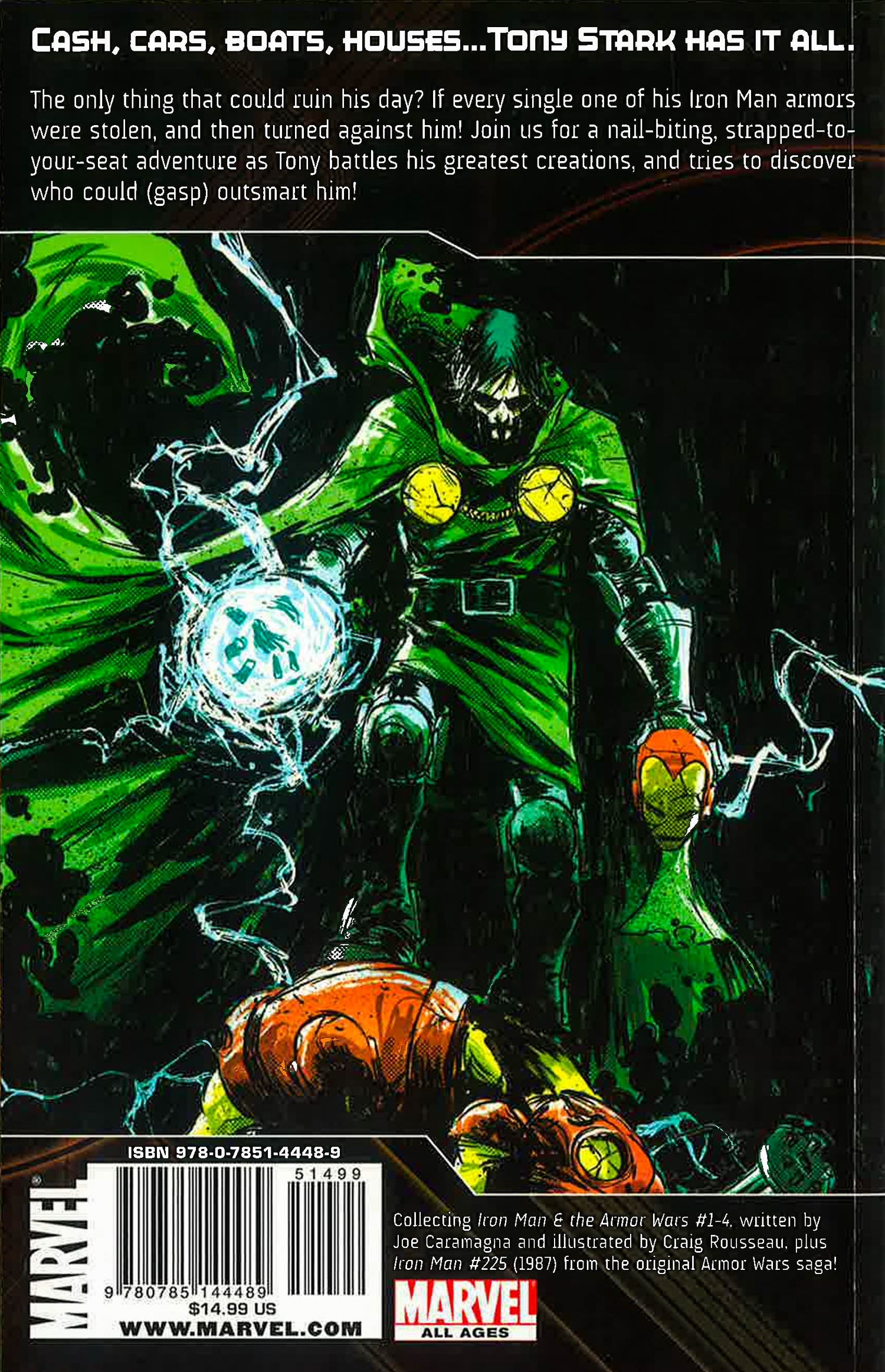 Cash, cars, boats, houses...Tony Stark has got it all. The only thing that could ruin his day? If every single one of his Iron Man armors were stolen, and then turned against him. Join us for a nail-biting, strapped-to-your-seat adventure as Tony battles his greatest creations, and tries to discover who could (gasp) OUTSMART him!? Collects Iron Man & The Armor Wars #1-4. Plus: a reprinting of Iron Man #225 from the original Armor Wars.