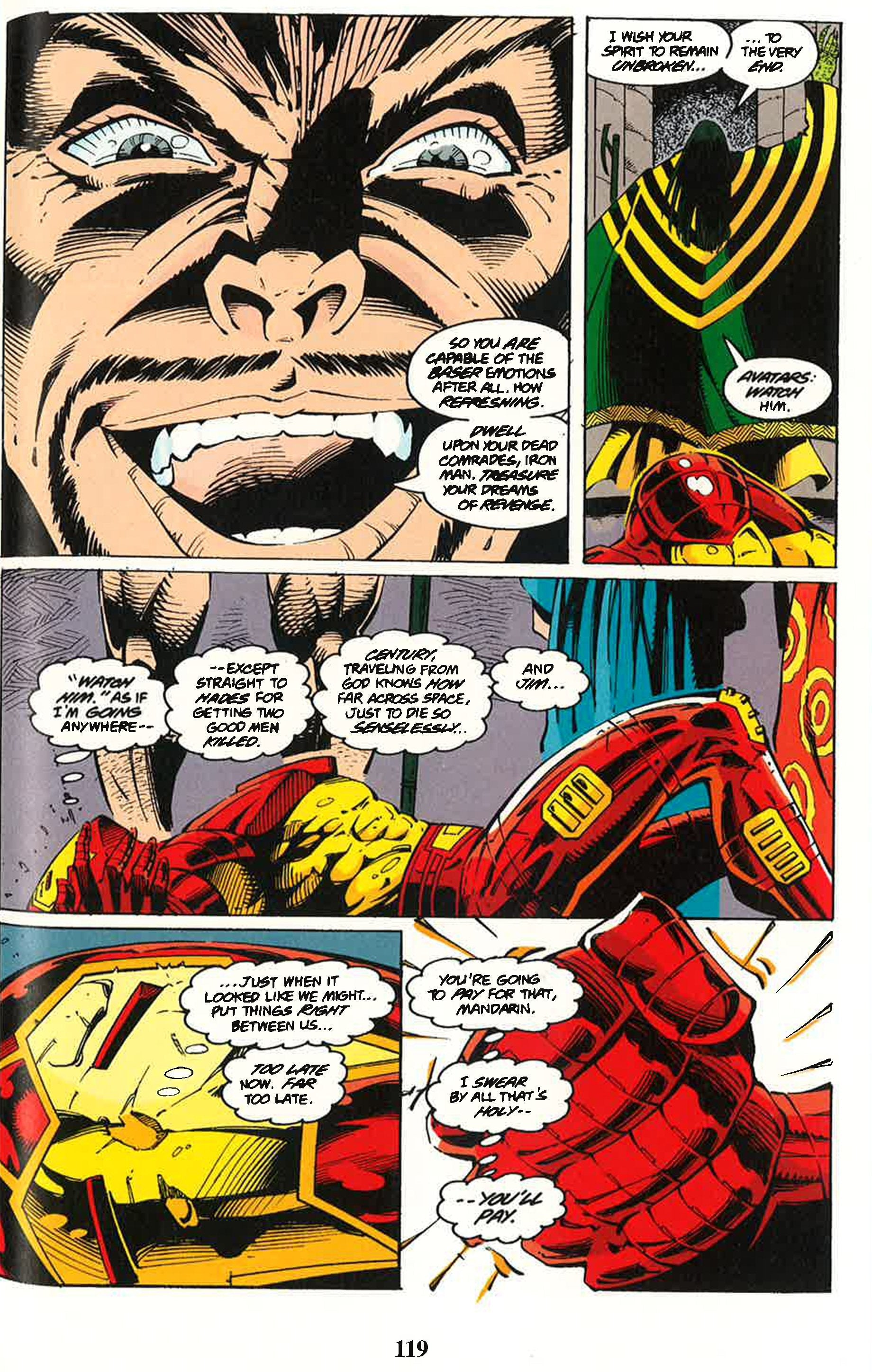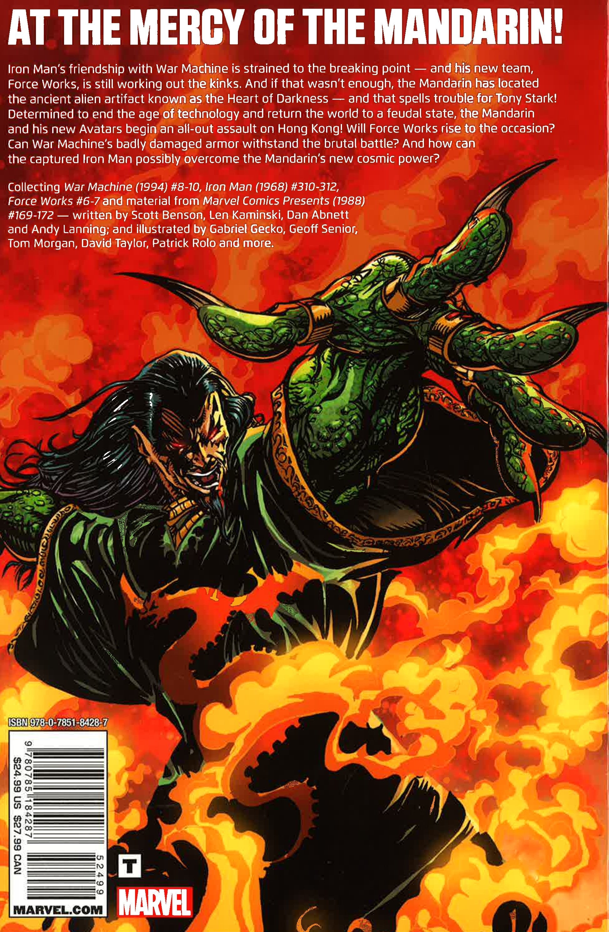 Iron Man's friendship with War Machine is strained to the breaking point, and his new team, Force Works, is still working out the kinks. And if that weren't enough, the Mandarin has located the ancient alien artifact known as the Heart of Darkness, and that spells trouble for Tony Stark! Determined to end the 'age of technology' and return the world to a feudal state, the Mandarin and his all-new Avatars begin an all-out assault on Hong Kong!