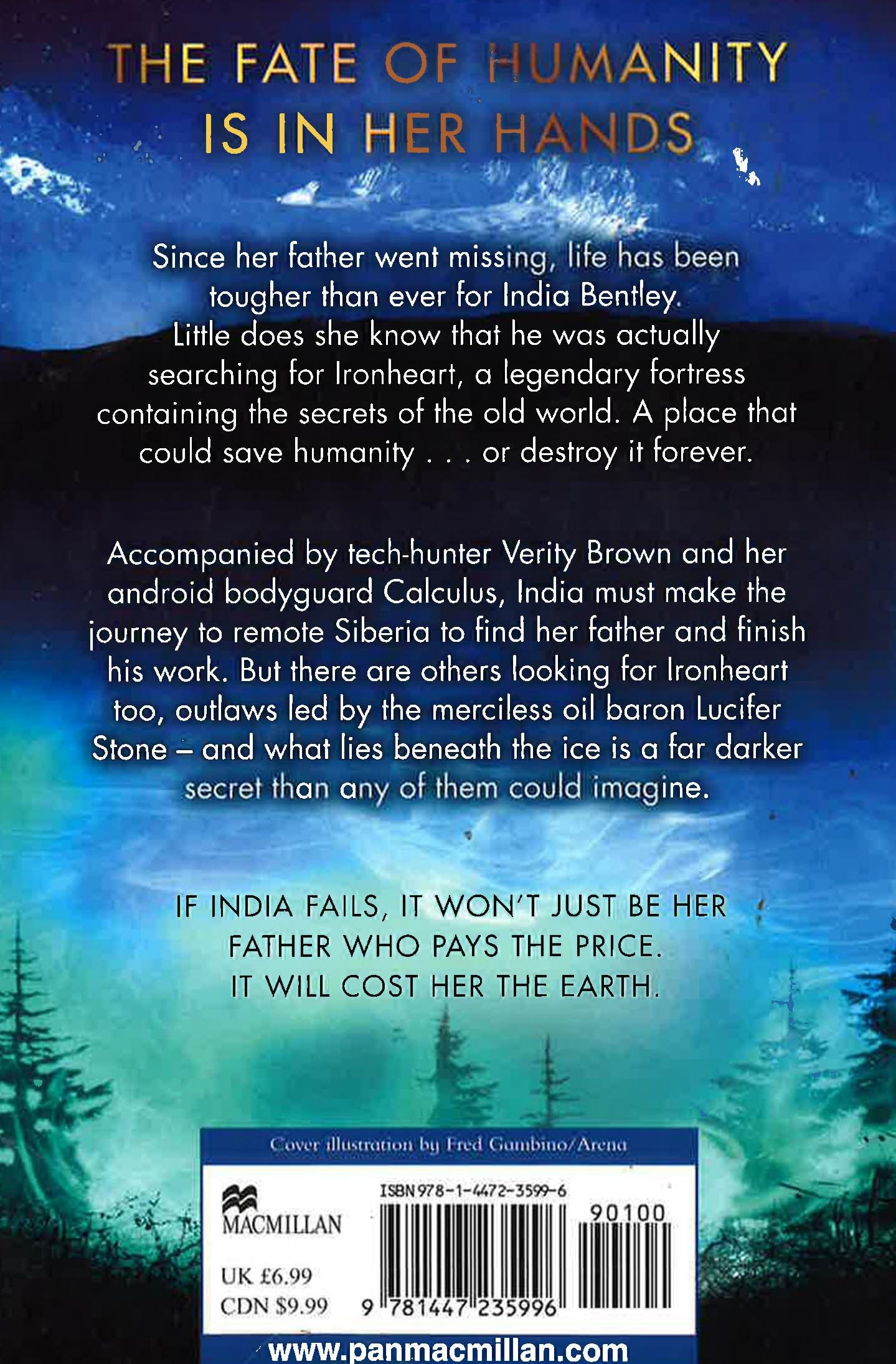Since her father went missing while prospecting for oil in Siberia, life has been tougher than ever for India Bentley. Little does she know that he was actually searching for Ironheart, a legendary fortress containing the secrets of the old world. A place some say could save humanity . . . or destroy the world.Along with tech-hunter Verity Brown and her android, Calculus, a killer from the old world turned protector in the new, India must make the journey to remote Siberia to try to find her father and finish his work. But there are others fighting to find Ironheart too – and they have very different goals in mind.If India fails, it won’t just be her father who pays the price. It will cost her the Earth.