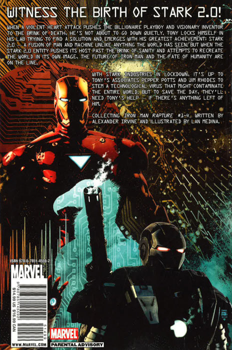 A pulse-pounding cyberpunk thriller by Alexander Irvine (Buyout) and Lan Medina (Deathlok: The Demolisher). The future belongs to Tony Stark. So when a violent heart attack pushes the billionaire playboy and visionary inventor to the brink of death, he's not about to go down quietly. Enter Stark 2.0 - a fusion of man and machine unlike anything the world has seen before, an entity that will push its host past the brink of sanity as it attempts to recreate the world in its own image. Collecting: Iron Man: Singularity #1-4