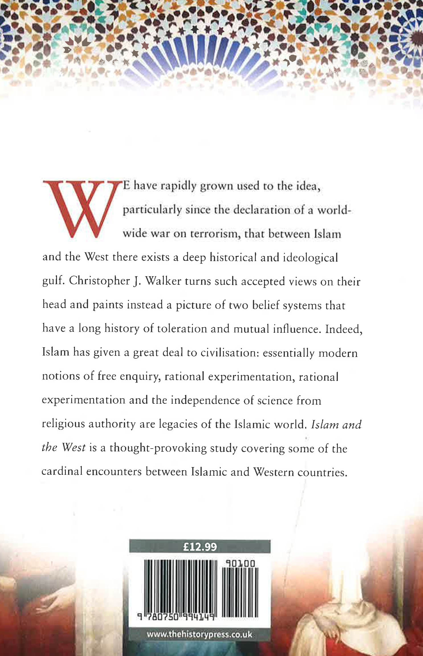 We have rapidly grown used to the idea, particularly since the declaration of a worldwide war on terrorism, that between Islam and the West there exists a deep historical and ideological gulf. Christopher J. Walker turns such accepted views on their head and paints instead a picture of two belief systems that have a long history of toleration and mutual influence. Indeed, Islam has given a great deal to civilisation: essentially modern notions of free enquiry, rational experimentation, rational experimentation and the independence of science from religious authority are legacies of the Islamic world. Islam and the West is a thought-provoking study covering some of the cardinal encounters between Islamic and Western countries.