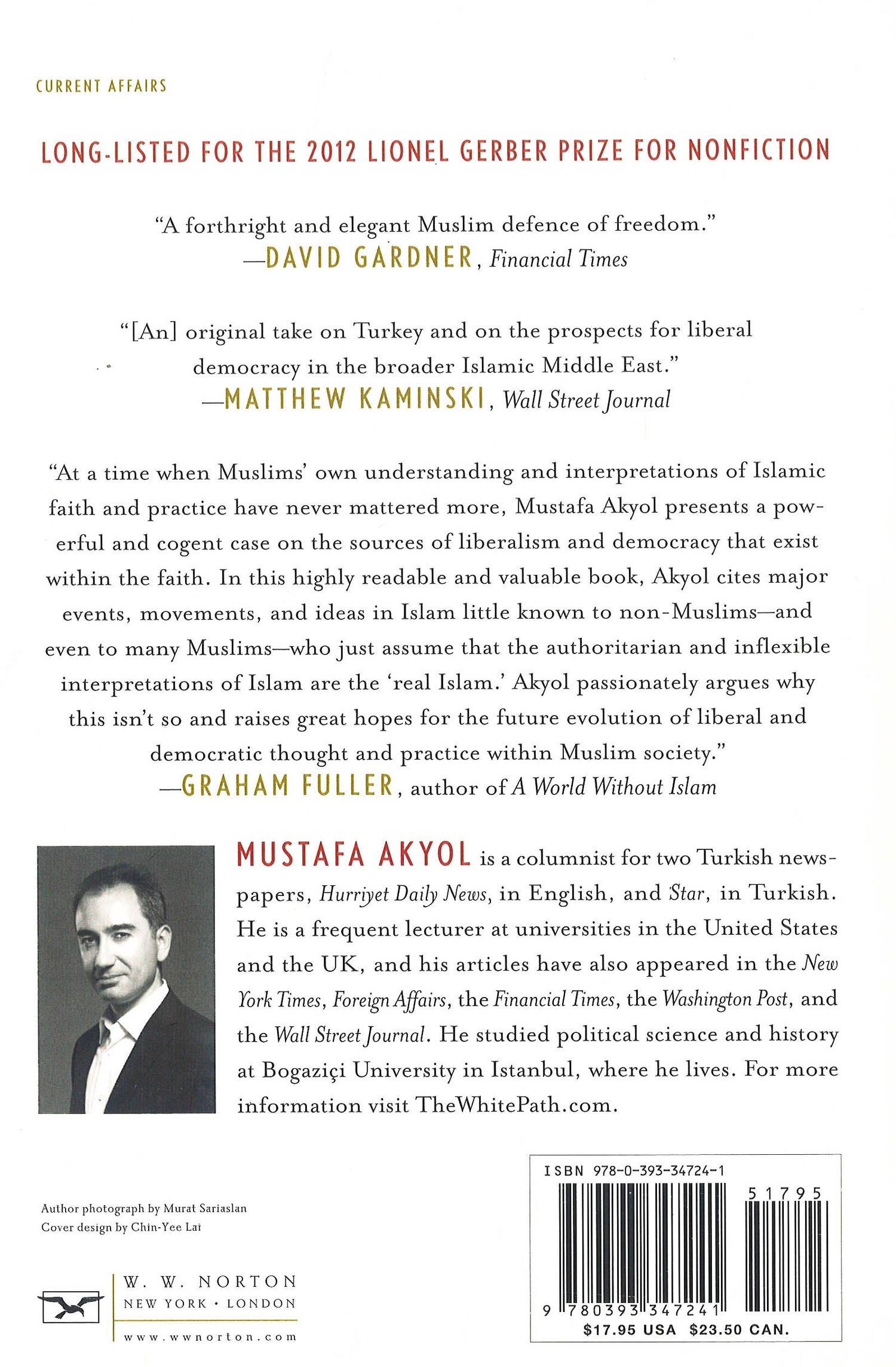 As the Arab Spring threatens to give way to authoritarianism in Egypt and reports from Afghanistan detail widespread violence against U.S. troops and women, news from the Muslim world raises the question: Is Islam incompatible with freedom? In Islam without Extremes, Turkish columnist Mustafa Akyol answers this question by revealing the little-understood roots of political Islam, which originally included both rationalist, flexible strains and more dogmatic, rigid ones. Though the rigid traditionalists won out, Akyol points to a flourishing of liberalism in the nineteenth-century Ottoman Empire and the unique "Islamo-liberal synthesis" in present-day Turkey. As he powerfully asserts, only by accepting a secular state can Islamic societies thrive. Islam without Extremes offers a desperately needed intellectual basis for the reconcilability of Islam and liberty.