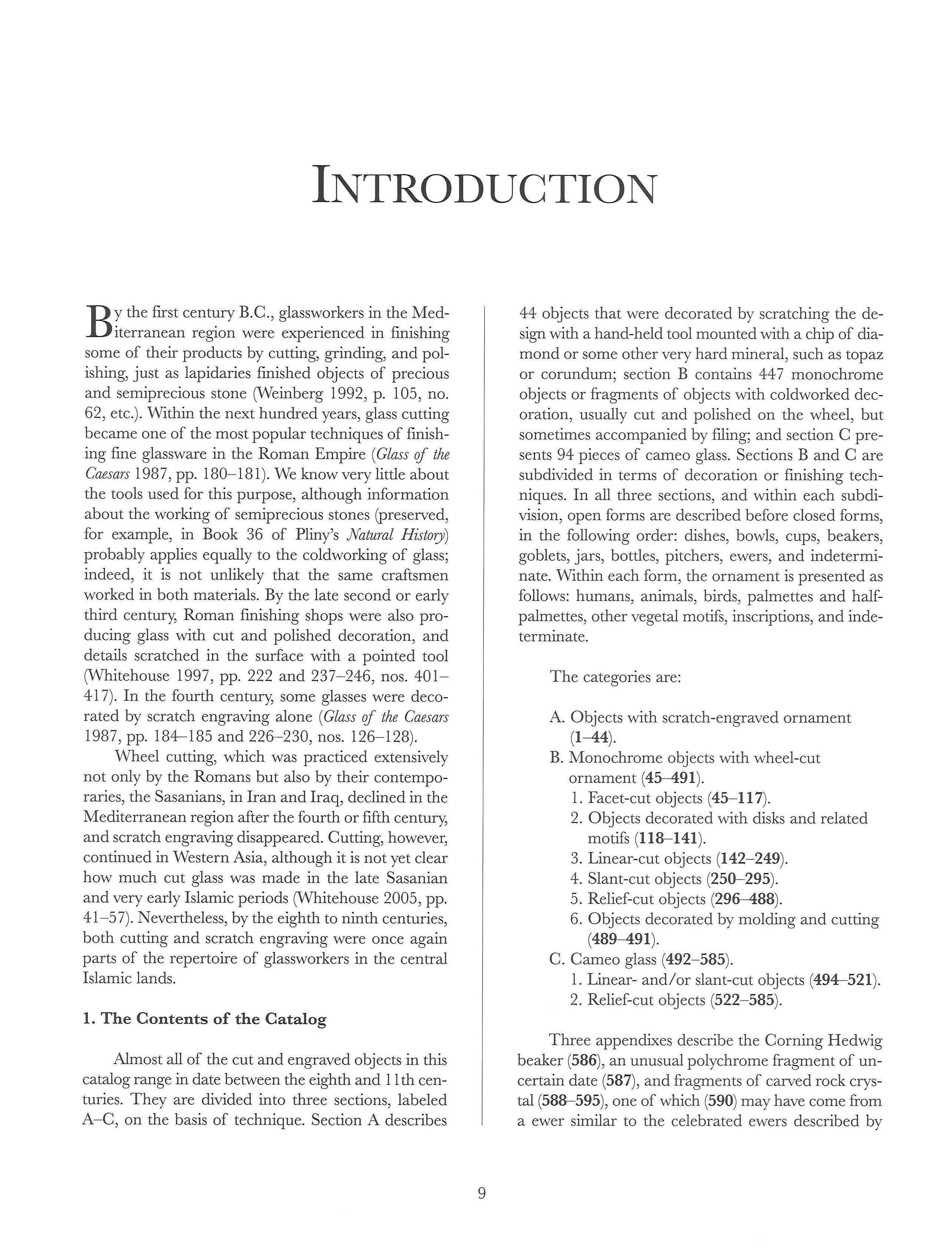 Contains more than 595 objects beautifully photographed and published for the first time This first volume of a three-part series on rare early Islamic glass is of interest to art historians and scholars of Middle Eastern history The methods of finishing glass by cutting and polishing first began in the regions of the Mediterranean in the first and second century B.C. during the Roman Empire. Within the next 200 years, these finishing shops were also producing glass both cut and with details engraved into the surface. Another technique, wheel-cutting glass, was also practiced by the Romans and their contemporaries, the Sasanians, in Iran and Iraq. However, with the fall of the Roman Empire in the fifth century A.D. these methods all declined and eventually disappeared from the Mediterranean but were sustained in Western Asia. By the eighth and ninth centuries, both cutting and scratch engraving were part of the thriving repertoire of glassmakers in the central Islamic lands.