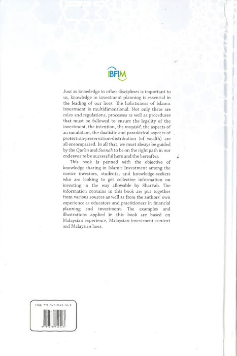 This book is penned with the objective of knowledge sharing in Islamic Investment among the novice investors, students, and knowledge seekers who are looking to get collective information on investing in the way allowable by Shari’ah. The information contains in this book are put together from various sources as well as from the authors’ own experience as educators and practitioners in financial planning and investment. The examples and illustrations applied in this book are based on Malaysian experience, Malaysian investment context and Malaysia laws.
