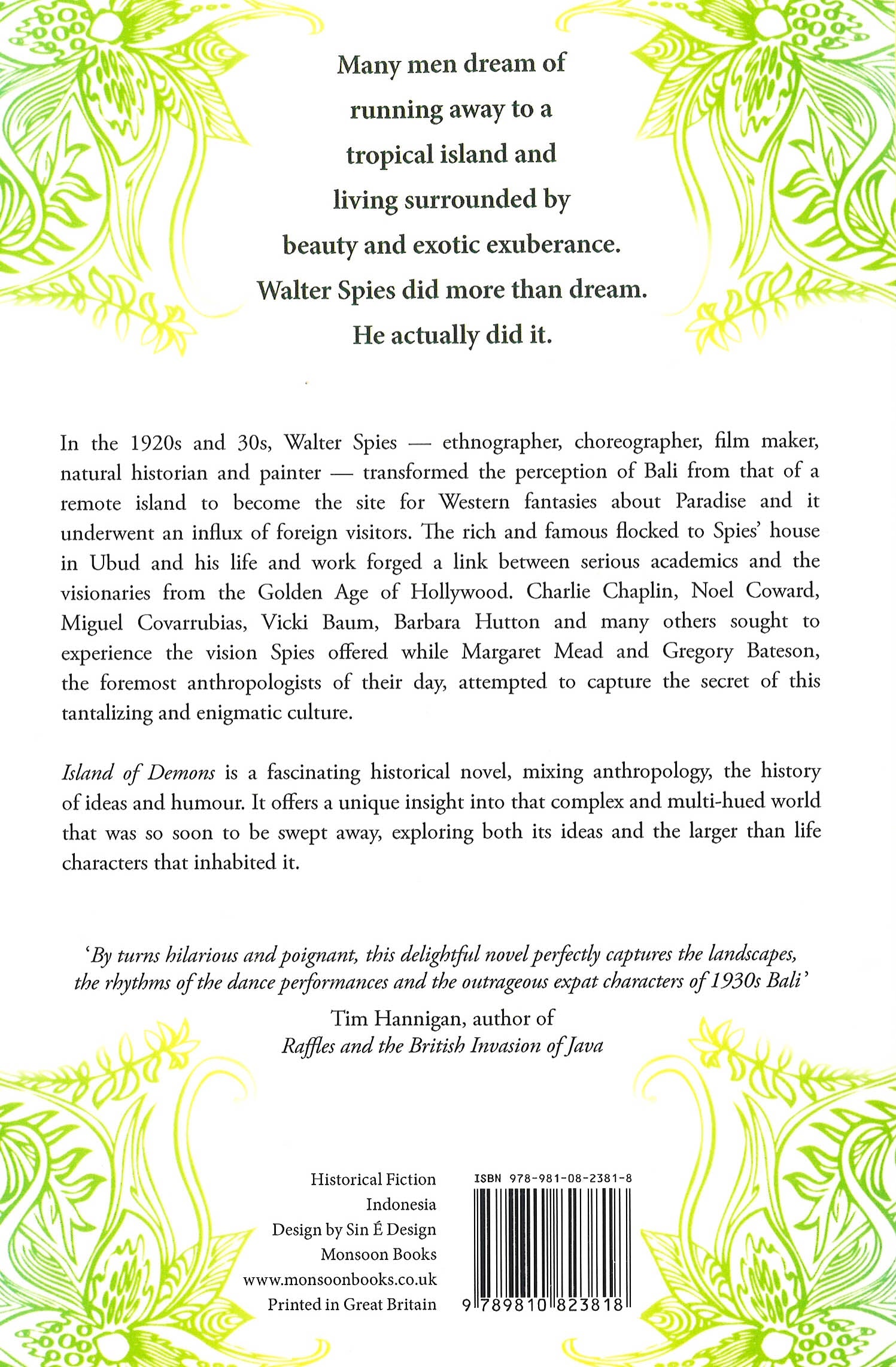 Many men dream of running away to a tropical island and living surrounded by beauty and exotic exuberance. Walter Spies did more than dream. He actually did it. In the 1920s and 30s, Walter Spies - ethnographer, choreographer, film maker, natural historian and painter - transformed the perception of Bali from that of a remote island to become the site for Western fantasies about Paradise and it underwent an influx of foreign visitors. The rich and famous flocked to Spies' house in Ubud and his life and work forged a link between serious academics and the visionaries from the Golden Age of Hollywood. Charlie Chaplin, Noel Coward, Miguel Covarrubias, Vicki Baum, Barbara Hutton and many others sought to experience the vision Spies offered while Margaret Mead and Gregory Bateson, the foremost anthropologists of their day, attempted to capture the secret of this tantalizing and enigmatic culture. Island of Demons is a fascinating historical novel, mixing anthropology, the history of ideas and humour. It offers a unique insight into that complex and multi-hued world that was so soon to be swept away, exploring both its ideas and the larger than life characters that inhabited it.