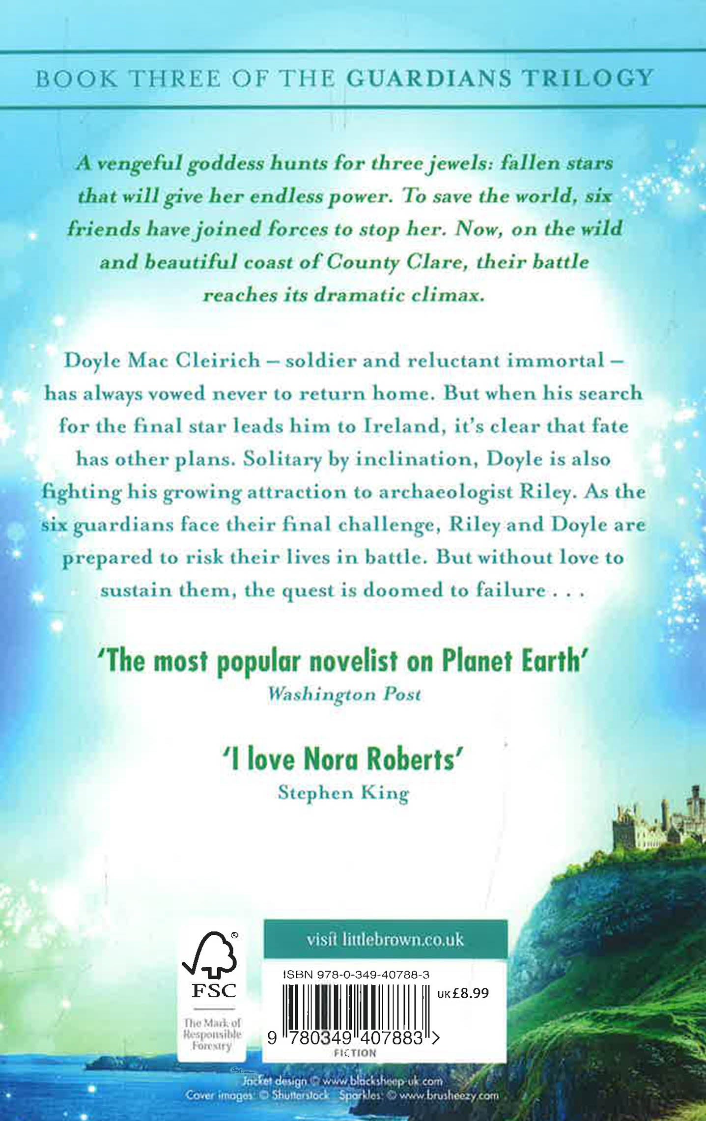 A vengeful goddess hunts for three jewels: fallen stars that will give her endless power. To save the world, six friends have joined forces to stop her. Now, on the wild and beautiful coast of County Clare, their battle reaches its dramatic climax. Doyle Mac Cleirich - soldier and reluctant immortal - has always vowed never to return home. But when his search for the final star leads him to Ireland, it becomes clear that fate has other plans. Solitary by inclination, Doyle is also fighting his growing attraction to archaeologist Riley. His warrior spirit is drawn to the wild - and there's no one more familiar with the wild than Riley. As the six guardians face their final challenge, Riley and Doyle are prepared to risk their lives in battle. But without love to sustain them, the quest is doomed to failure...