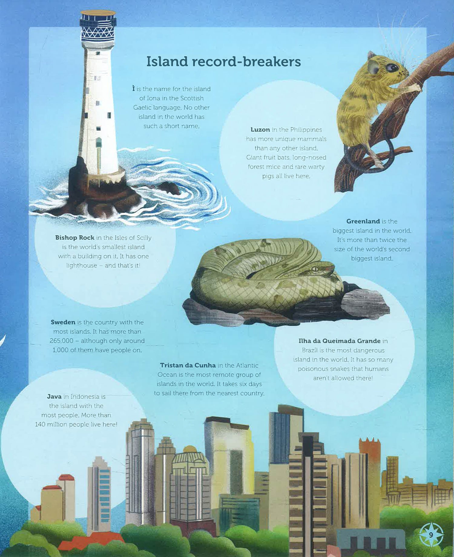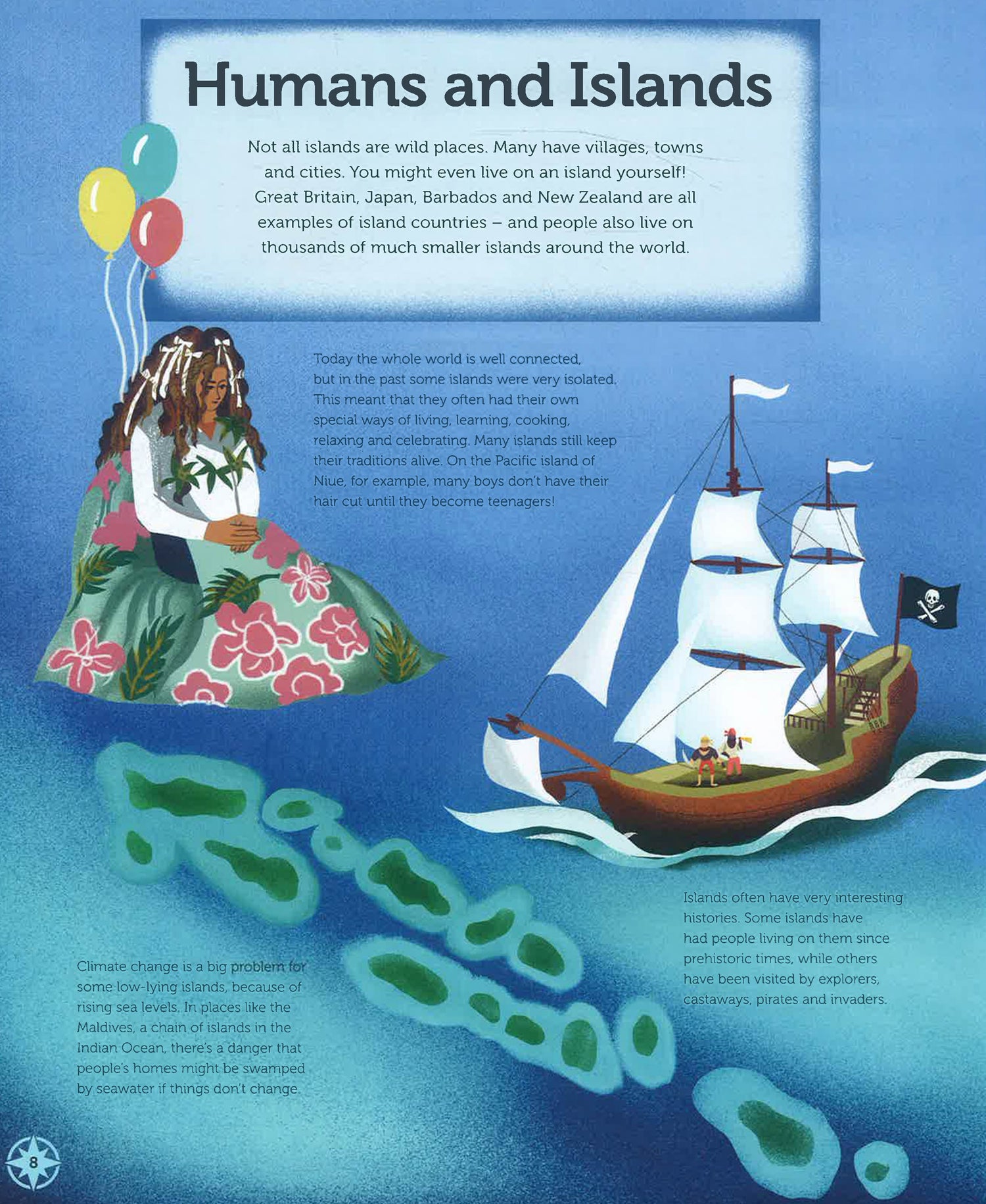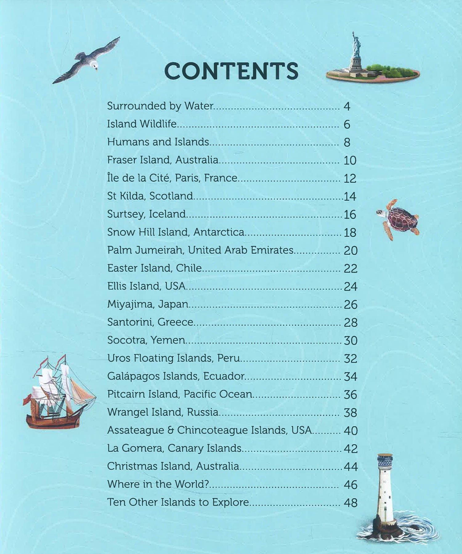 Some islands are busy, bustling homes to many people, while others have almost no life at all. Some are covered in thick jungle, others in freezing ice. Some are millions of years old, and others are brand new. Islands come in countless shapes and sizes, and this book lets you explore. Turn the pages to climb their mountains, swim in their seas, discover their histories, wonder at their treasures – and above all, be inspired.