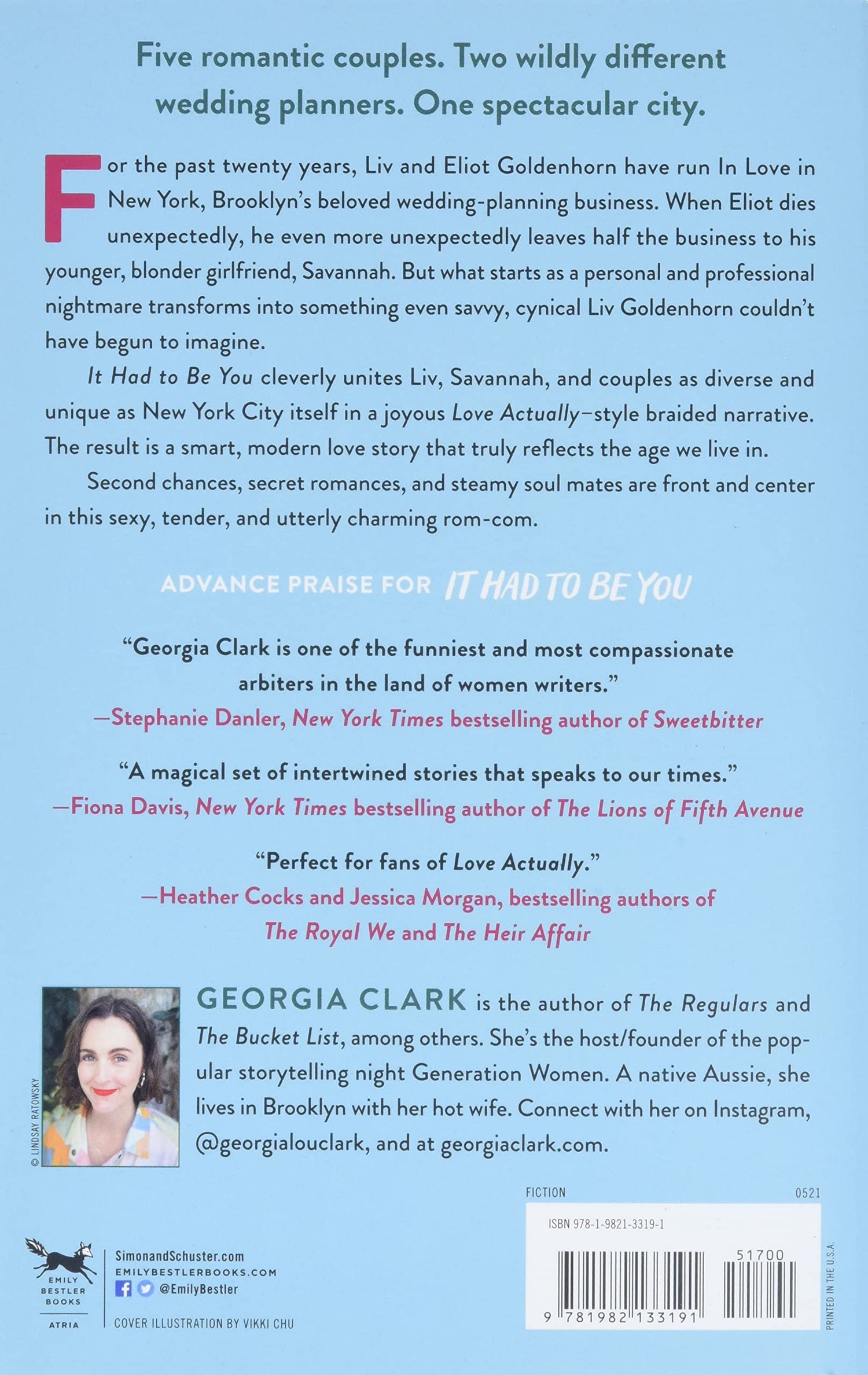 It Had to Be You cleverly unites Liv, Savannah, and couples as diverse and unique as New York City itself, in a joyous Love-Actually-style braided narrative. The result is a smart, modern love story that truly speaks to our times. Second chances, secret romance, and steamy soul mates are front and center in this sexy, tender, and utterly charming rom-com that is “so much fun” (Casey McQuiston, New York Times bestselling author).