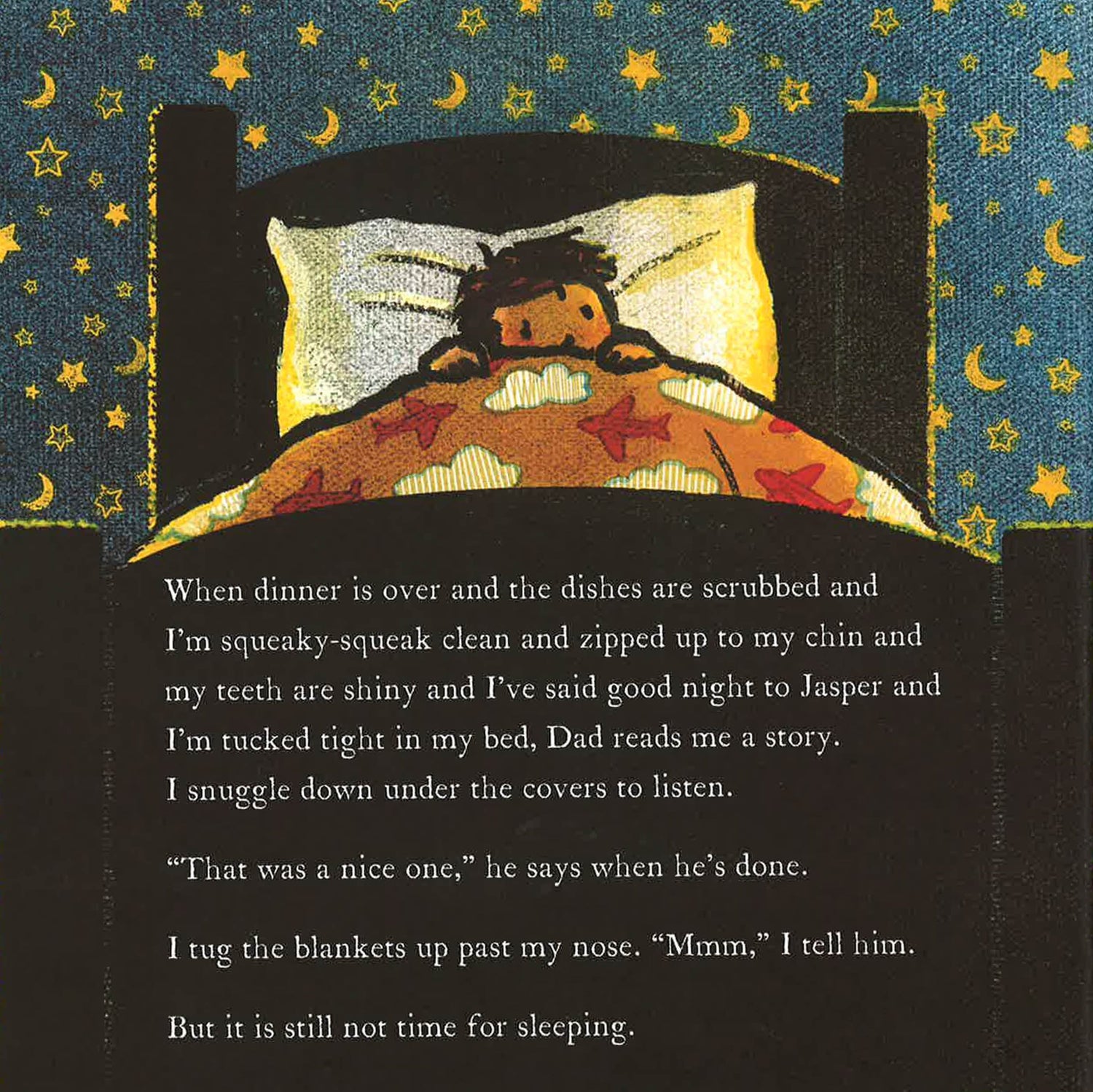As the day comes to an end, bedtime draws near. But the little boy in this book is quite sure it is NOT time for sleeping. As each piece of his evening routine is completed--helping with the dishes, playing with the dog, getting into pajamas, brushing teeth with Dad, being tucked in by Mom, and listening to a story--he becomes a little more certain: it is definitely not time for sleeping. The question is, when WILL it be time for sleeping? A rhythmic, cumulative text and lush twilit scenes come together to create a perfect bedtime book that will be treasured for generations to come.