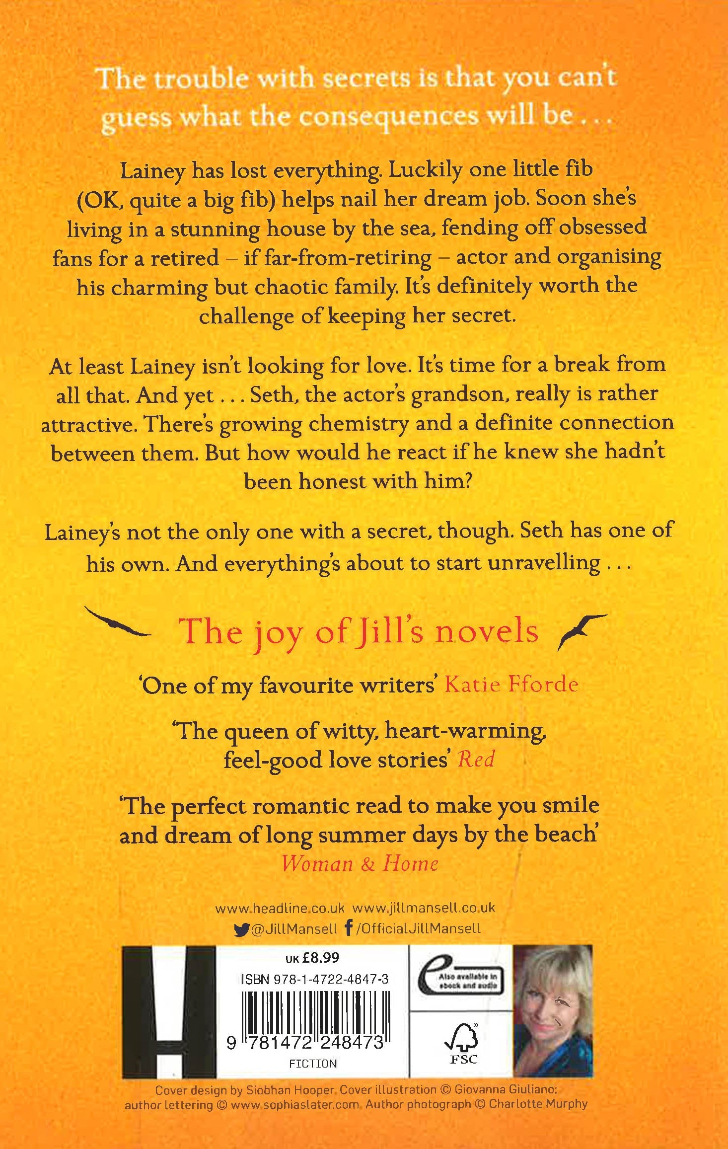 Jill Mansell's fabulous new novel AND NOW YOU'RE BACK is coming in January 2021. Pre-order now to be one of the first to read it!Snap up your perfect autumn read from the SUNDAY TIMES bestselling author and 'queen of feel-good fiction'!'Like a little blast of sunshine - uplifting, heartwarming and supremely feelgood' SOPHIE KINSELLA'Gripping and incredibly comforting' MARIAN KEYESThe trouble with secrets is that you can't guess what the consequences will be . . .Lainey has lost everything. Luckily one little fib (OK, quite a big fib) helps nail her dream job. Soon she's living in a stunning house by the sea, fending off obsessed fans for a retired - if far-from-retiring - actor and organising his charming but chaotic family. It's definitely worth the challenge of keeping her secret.At least Lainey isn't looking for love. It's time for a break from all that. And yet . . . Seth, the actor's grandson, really is rather attractive. There's growing chemistry and a definite connection between them. But how would he react if he knew she hadn't been honest with him? Lainey's not the only one with a secret, though. Seth has one of his own. And everything's about to start unravelling . . .A beautiful Cornish setting, one chaotic family, and a woman who's had enough of love. Or has she? Praise for Jill Mansell:'One of my favourite writers' KATIE FFORDE'The queen of witty, heart-warming, feel-good love stories' RED'Reading Jill is always such a joy!' VERONICA HENRY'Jill Mansell just gets better and better' HEAT * * * * *'A fab, feel-good read' PRIMA** Be one of the first to read Jill Mansell's new novel, SHOULD I TELL YOU? - available for pre-order now**Readers adore Jill Mansell!'A fantastic read yet again, great characters, great story and as always a few happy tears''Completely absorbing and so addictive''Entertains from start to finish, and it fully deserves a 5-star rating''Great characters and I can't get enough of the "will they, won't they" - "should they, could they"obstacles and setbacks'