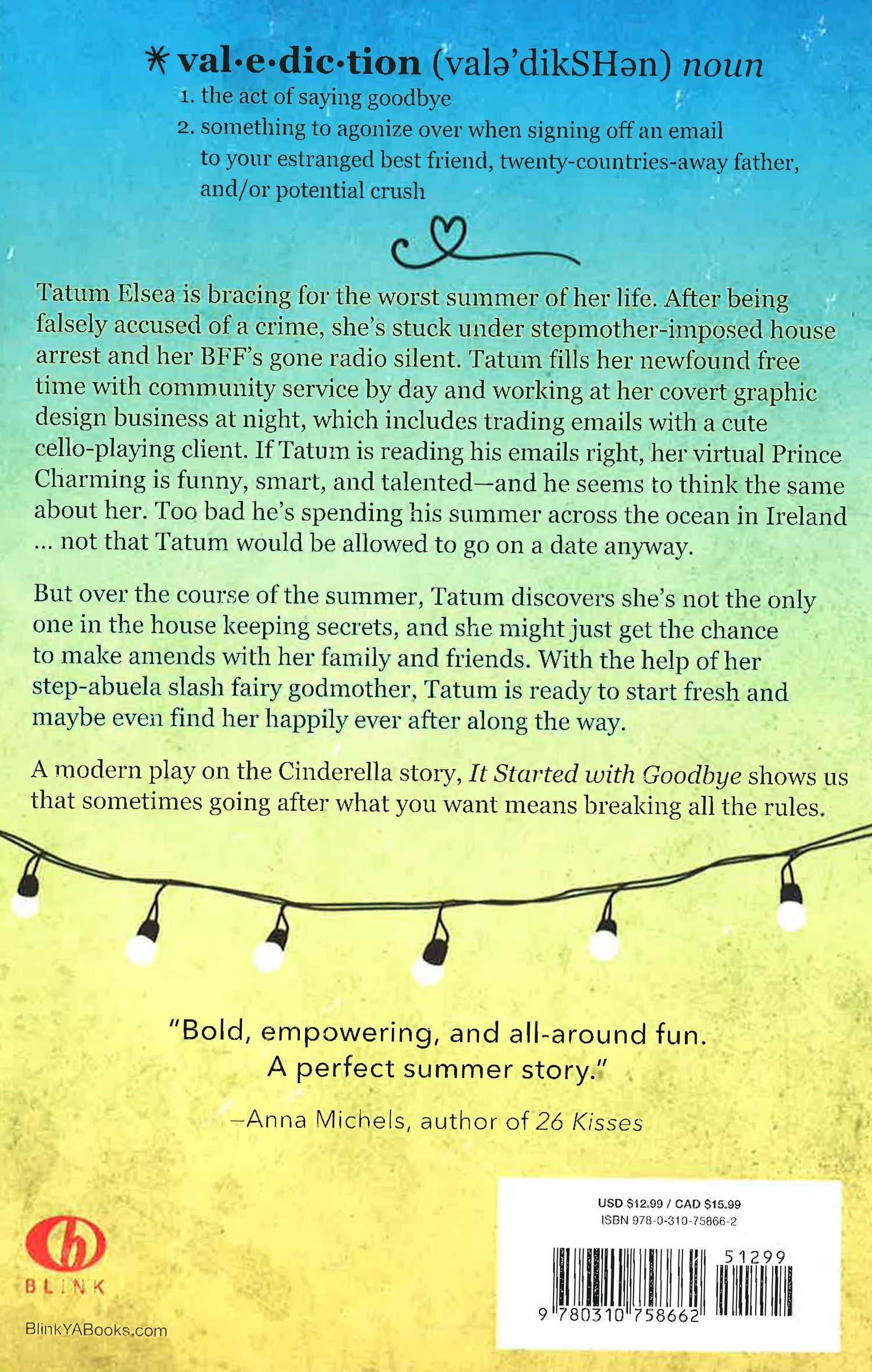 Sixteen-year-old Tatum Elsea is bracing for the worst summer of her life. After being falsely accused of a crime, she's stuck under stepmother-imposed house arrest and her BFF's gone ghost. Tatum fills her newfound free time with community service by day and working at her covert graphic design business at night (which includes trading emails with a cute cello-playing client).When Tatum discovers she's not the only one in the house keeping secrets, she finds she has the chance to make amends with her family and friends. Equipped with a new perspective, and assisted by her feisty step-abuela/fairy-godmother, Tatum is ready to start fresh and maybe even get her happy ending along the way.