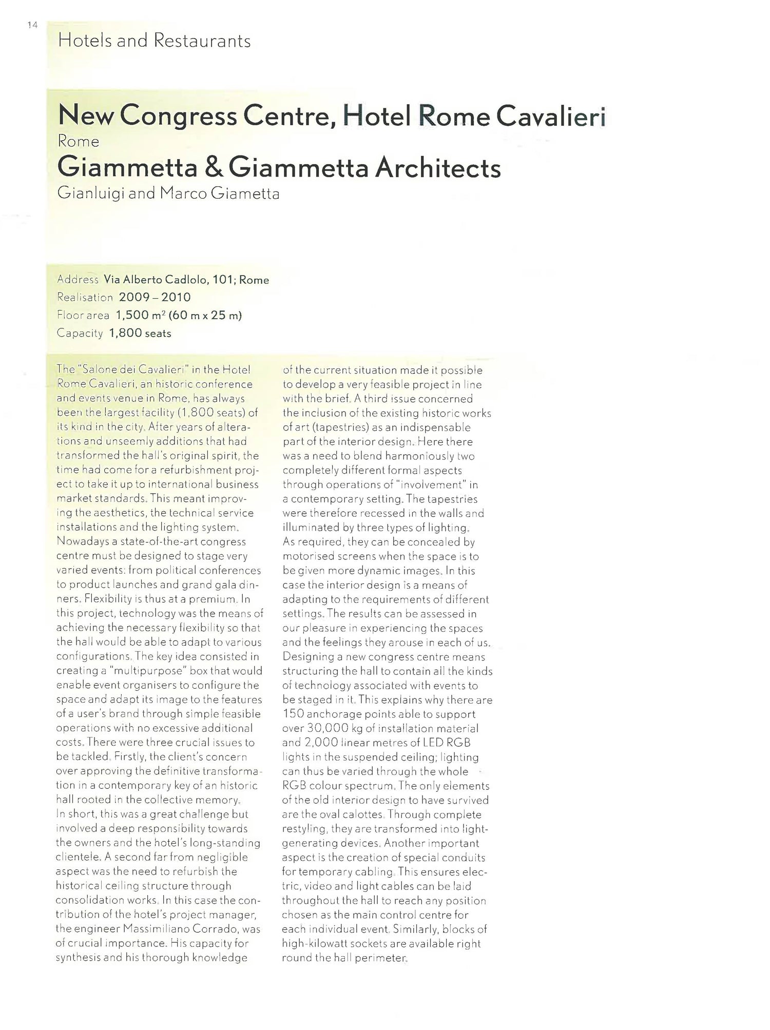For decades, Italian interior architecture has been characterized by a special innovative spirit and willingness to take risks, not only on the aesthetic level but also in the use and combination of new materials. More readily than elsewhere, influences from art and design are embraced here; designers provocatively and subtly blur the boundaries between these disciplines. It is precisely for this reason that their creations are in high demand worldwide for the design of restaurants and shops, private residences and hotels, offices and museums, often proving to be trendsetters. The book showcases a selection of the latest designs realized between 2000 and 2009 in Italy and other countries, including the USA, France, Great Britain, Israel, and Dubai. Among the represented architects and designers are masters like Renzo Piano, Michele De Lucchi, and Giorgio Armani, as well as representatives of the younger generation. One of the special features of the volume is extensive documentation through technical drawings and detailed photographs.