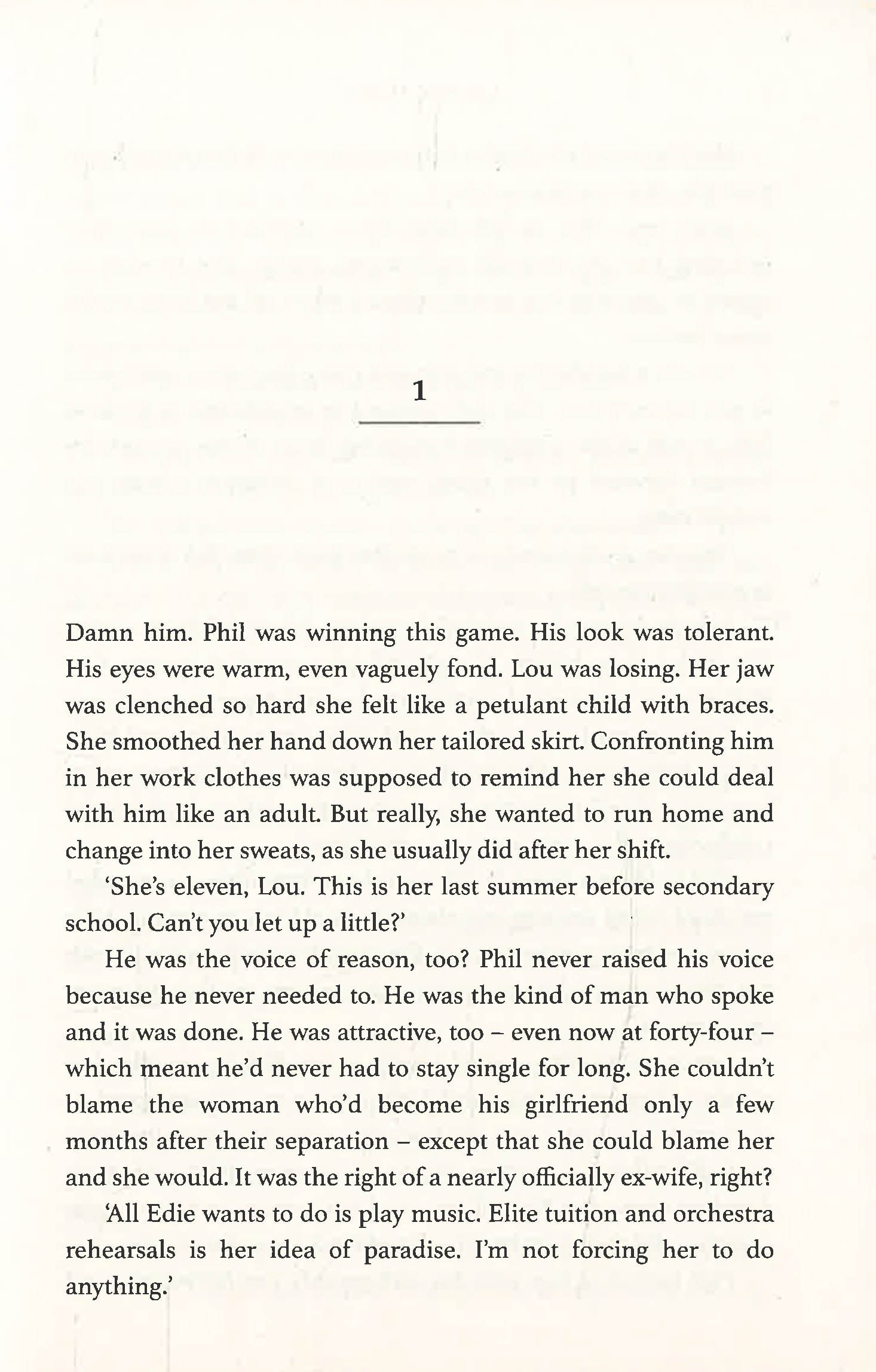 TV journalist Lou feels battered and bruised after her divorce from Phil, the father of her daughter Edie. Her confidence and sense of fun have steadily been drained away, and she isn’t sure who she is any more.