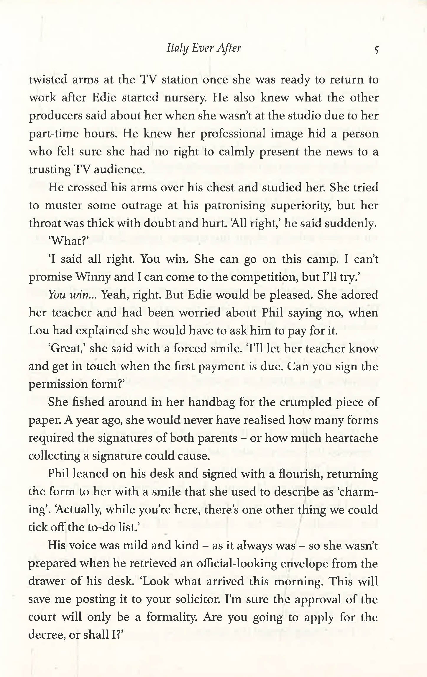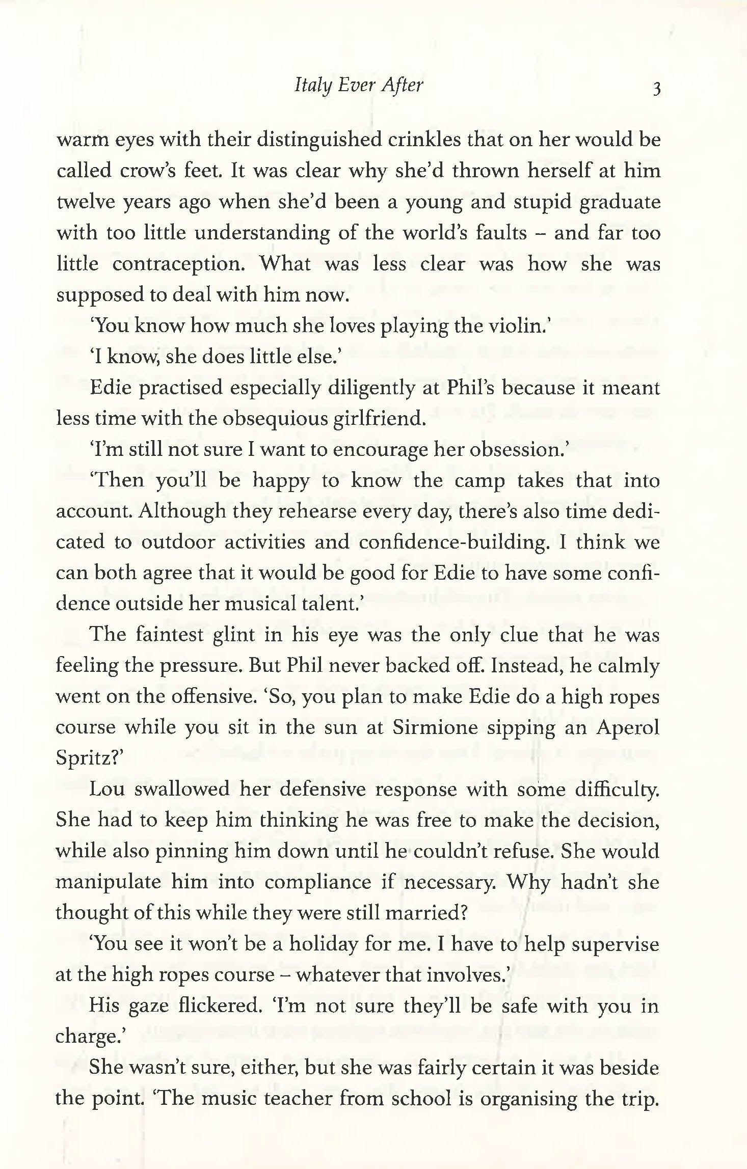 Nick Romano, Edie’s music teacher, loves being home in Italy, but coaching his students for their concert in Milan, is bringing back difficult memories. His blossoming friendship with Lou is the perfect distraction, although a summer fling would be easier to conduct without the scrutiny of his mother Greta, not to mention the interference of his extended Italian family.