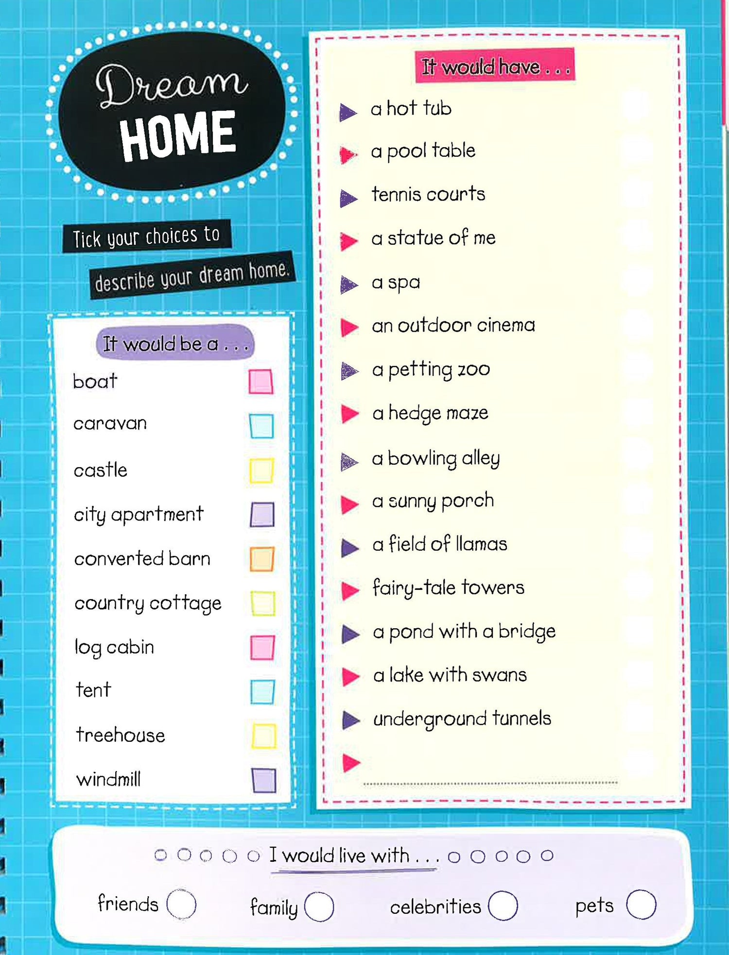 Celebrate the uniqueness of you with quizzes, surveys and sketches, then sew your own personalized cover with the colorful threads.