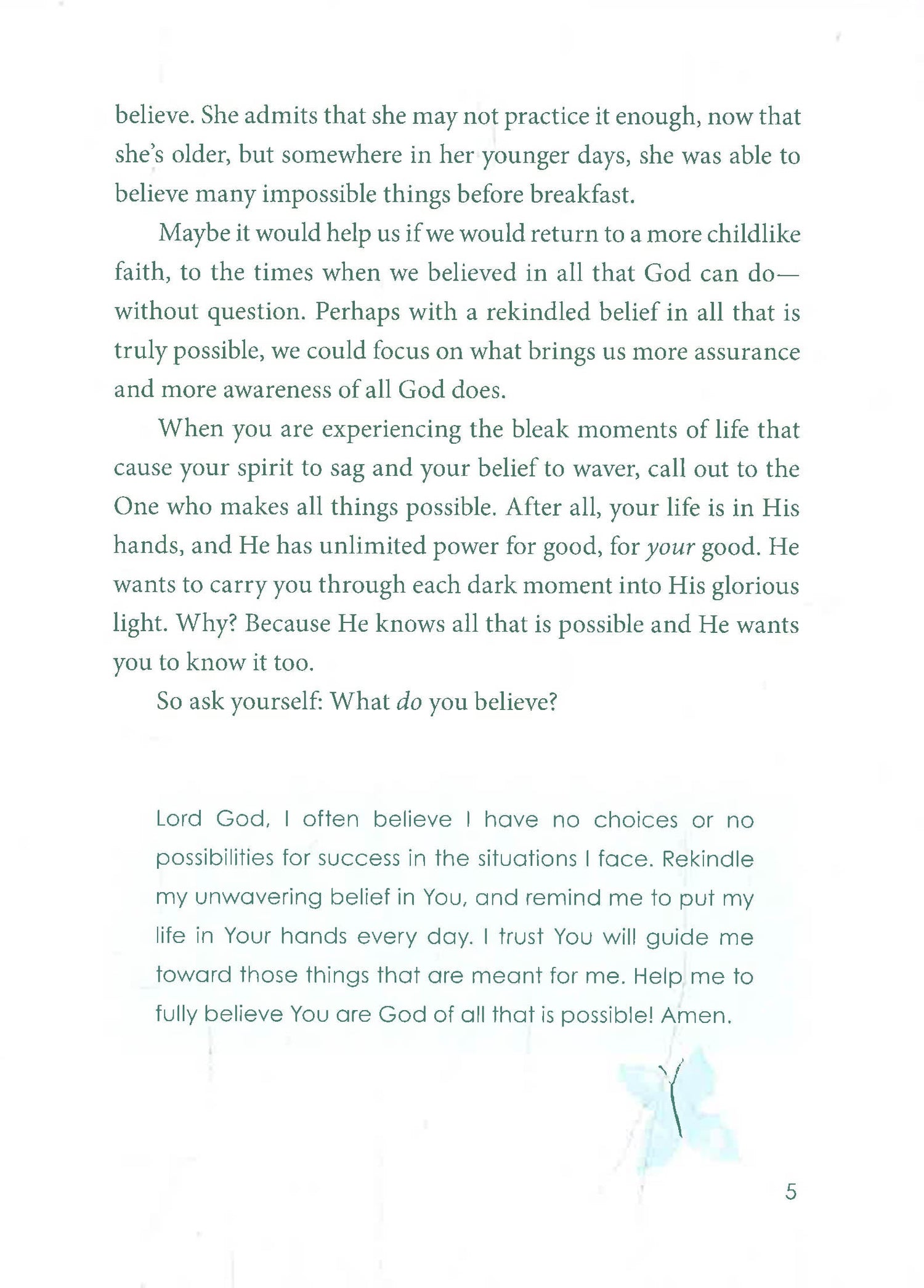 - Readings for people encountering disappointment and discouragement, such as Believe the Impossible, It’s a New Day, and Abundant Life