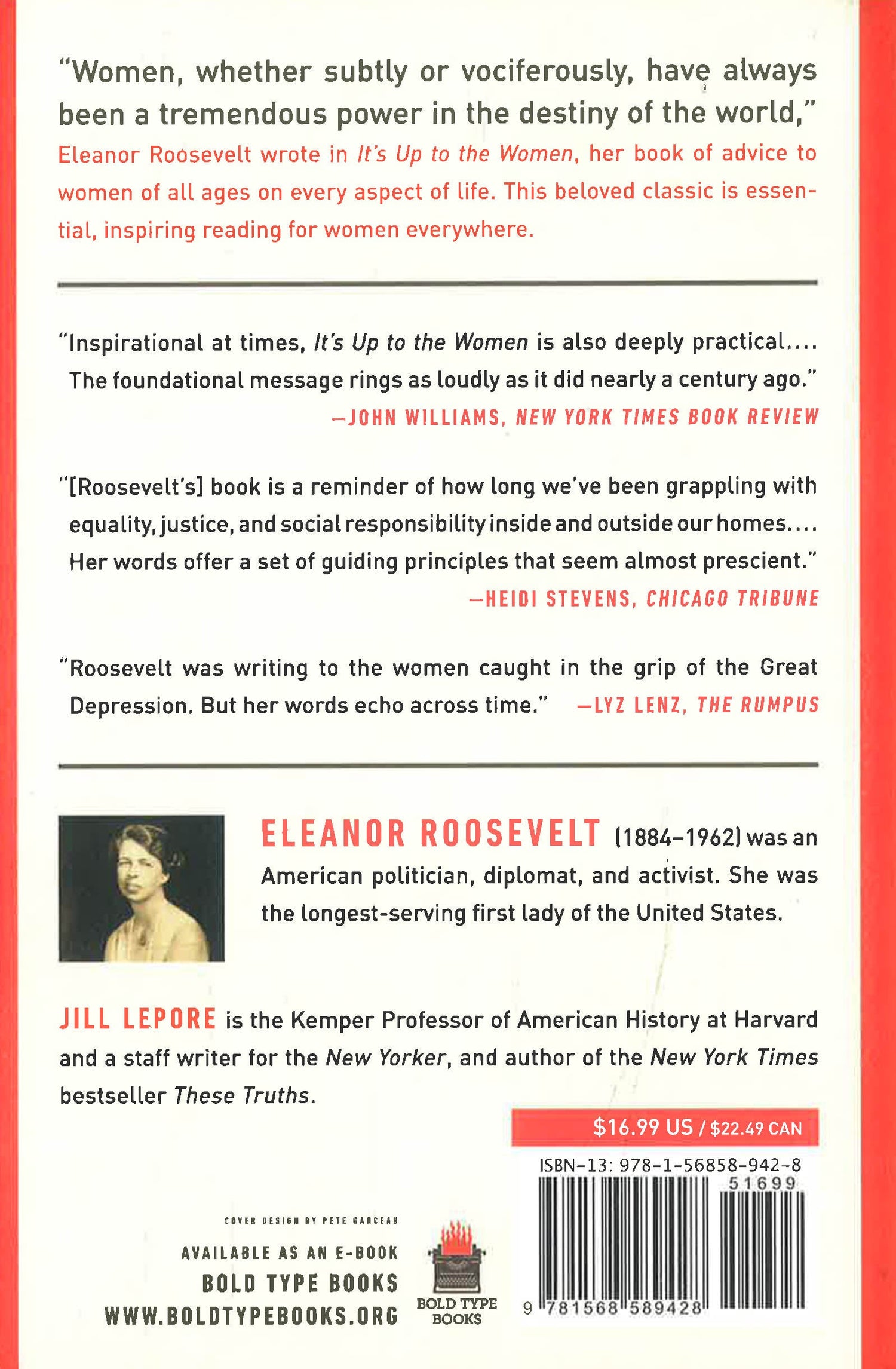 "Women, whether subtly or vociferously, have always been a tremendous power in the destiny of the world," Eleanor Roosevelt wrote in It's Up to the Women, her book of advice to women of all ages on every aspect of life. Written at the height of the Great Depression, she called on women particularly to do their part -- cutting costs where needed, spending reasonably, and taking personal responsibility for keeping the economy going.