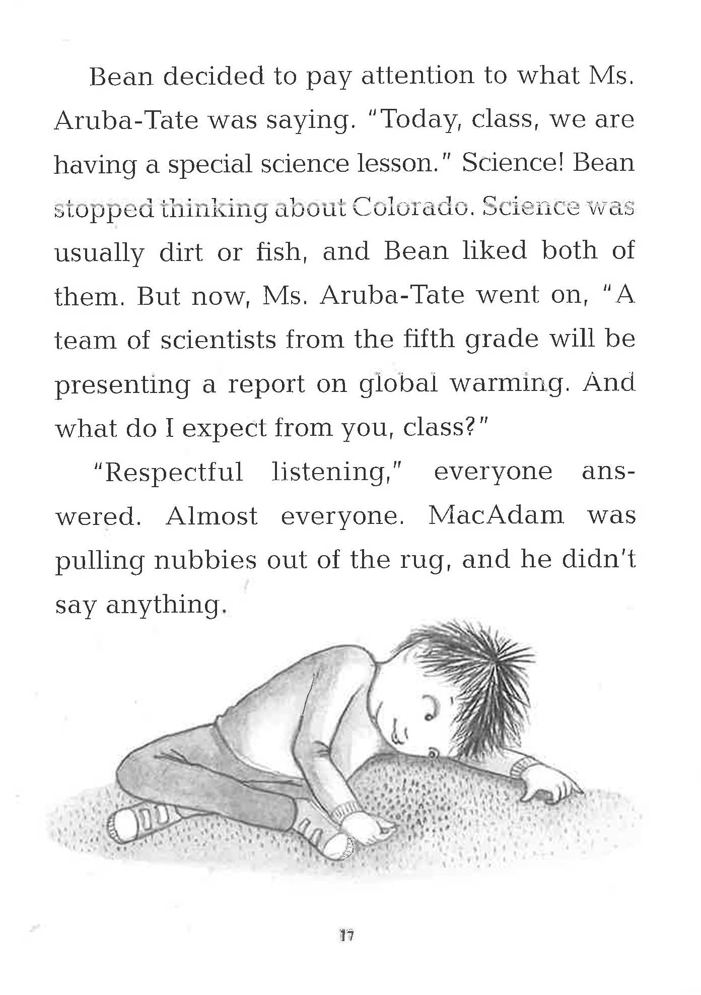 It's the Science Fair, and the second grade is all over it! Some kids are making man-eating robots. Some kids are holding their breath for a very, very long time. Some kids are doing interesting things with vacuum cleaners. The theme, obviously, is global warming. But what should Ivy and Bean do? Something involving explosions? Or ropes? Something with ice cubes? Or maybe...maybe something different.