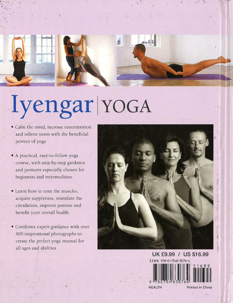 This title features classic yoga postures for mind, body and spirit. Calm the mind, increase concentration and relieve stress with the beneficial powers of yoga. This is a practical, easy-to-follow yoga course, with step-by-step guidance and postures especially chosen for beginners and intermediates. You can learn how to tone the muscles, acquire suppleness, stimulate the circulation, improve posture and benefit your overall health. It includes Iyengar basics, standing asanas, seated asanas, twists, inverted asanas, supine and prone asanas, routine practice and yoga therapy. Iyengar yoga is a practical philosophy and system of asanas, or postures, promoting physical, mental and spiritual wellbeing. This book explains the origins and philosophy of Iyengar yoga. The classic asanas are grouped into type for easy reference, and graded by difficulty, with variations to suit all levels of fitness and flexibility. There are sequences to follow for certain times and conditions of your life that will benefit illnesses and common problems, such as headaches, backache and arthritis.The book combines expert guidance with over 400 inspirational photographs to create the perfect yoga manual for all ages and abilities.
