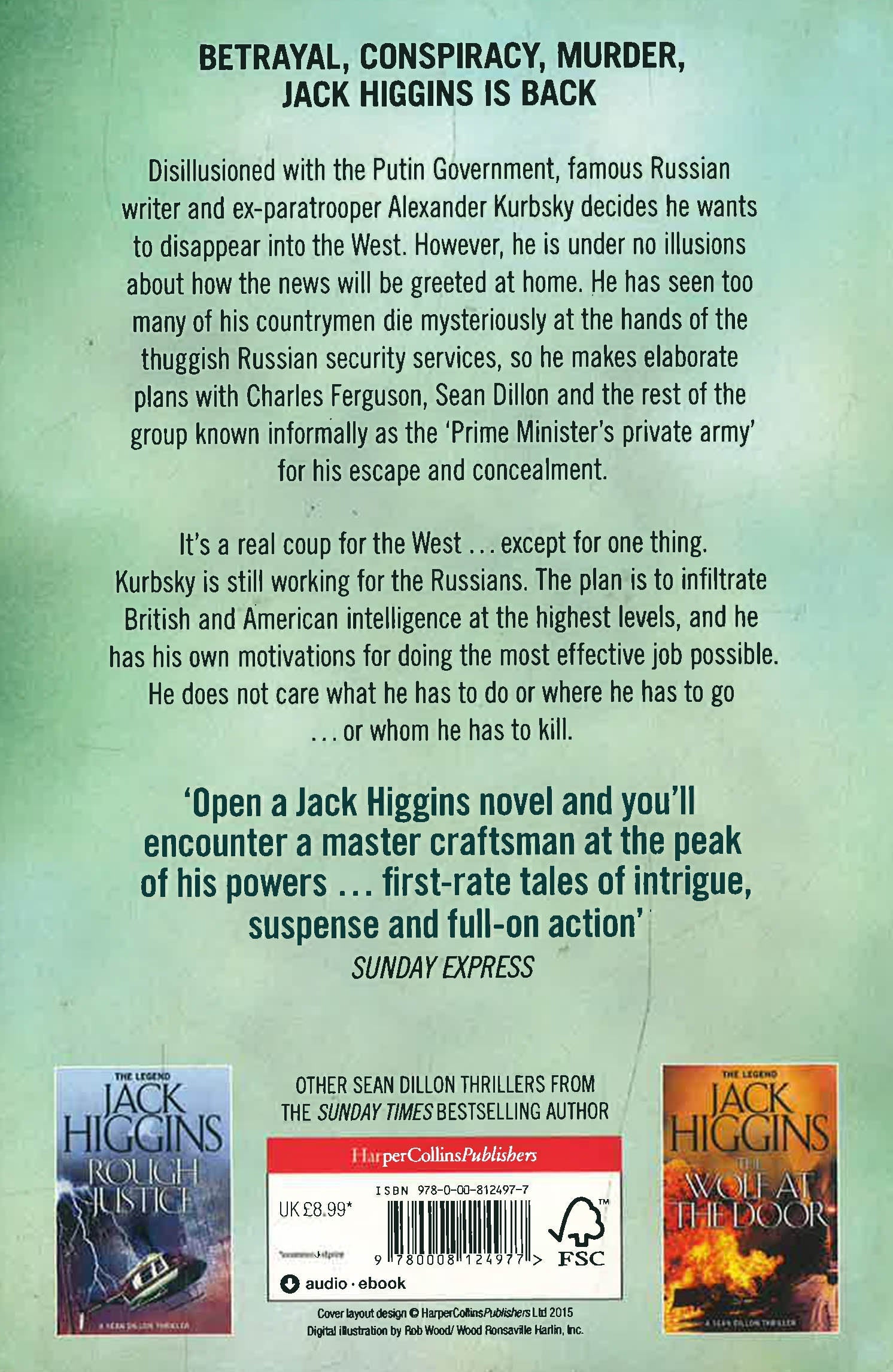 Dillon and company are back in the ultimate blockbuster from the 'legend' that is Jack Higgins Disillusioned with the Putin Government, famous Russian writer and ex-paratrooper Alexander Kurbsky decides he wants to disappear into the West. However he is under no illusions about how the news will be greeted at home - he has seen too many of his countrymen die mysteriously at the hands of the thuggish Russian security services, so he makes elaborate plans with Charles Ferguson, Sean Dillon and the rest of the group known informally as the "Prime Minister's private army" for his escape and concealment. It's a real coup for the West...except for one thing. Kurbsky is still working for the Russians. The plan is to infiltrate British and American intelligence at the highest levels, and he has his own motivations for doing the most effective job possible. He does not care what he has to do or where he has to go...or whom he has to kill.