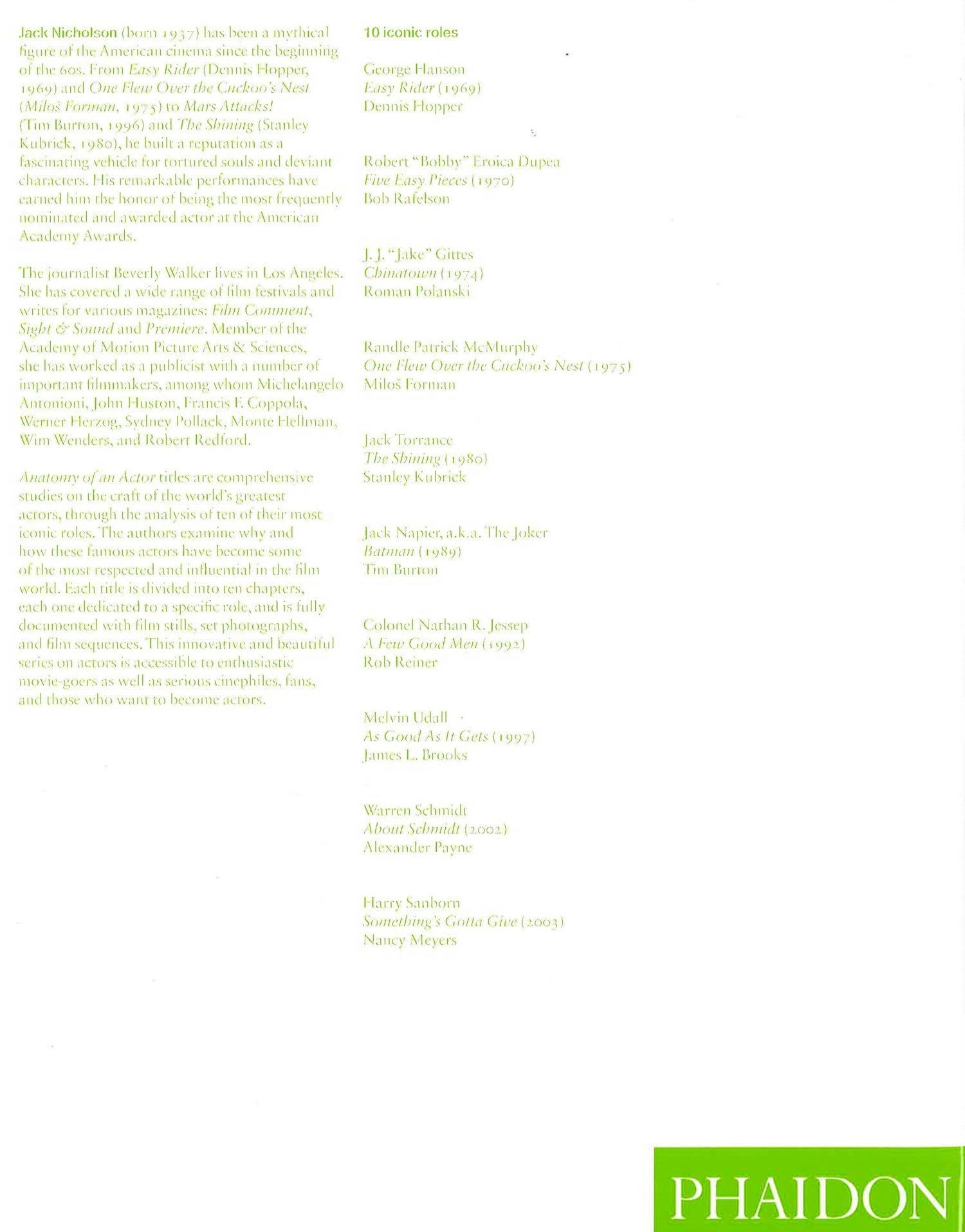 Throughout his career, Jack Nicholson has portrayed unique and challenging roles in classic movies such as Easy Rider (1969), Chinatown (1974), The Shining (1980), The Postman Always Ring Twice (1981), Terms of Endearment (1983), The Witches of Eastwick (1987) and The Departed (2006). Nicholson's twelve Oscar nominations make him the most nominated male Oscar winner.Jack Nicholson: Anatomy of an Actor is new title in the fascinating series from world-renowned cinema magazine Cahiers du cinema. The book focuses on ten key performances, combining both a narrative and analytical text with 300 images - from film stills to set photographs, film sequences, script notes and more - to explore the unparalleled career of Jack Nicholson. This thoughtful and lively examination of Nicholson's craft will appeal to professional audiences and movie fans alike.