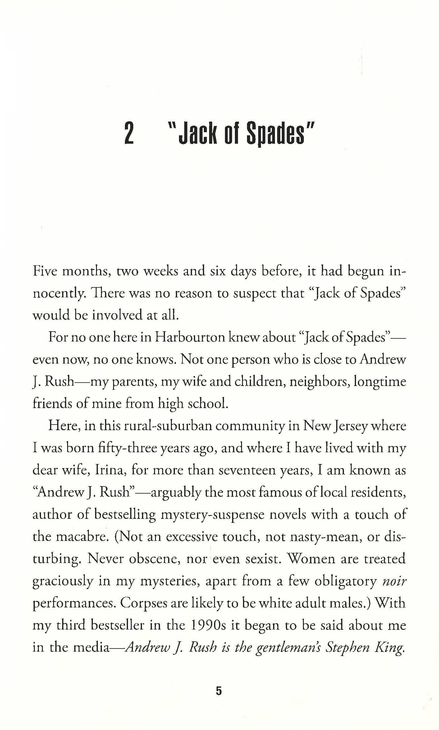But Andrew J. Rush is hiding a dark secret. Under the pseudonym Jack of Spades, he has penned another string of novels - dark tales of murder, lust and madness.