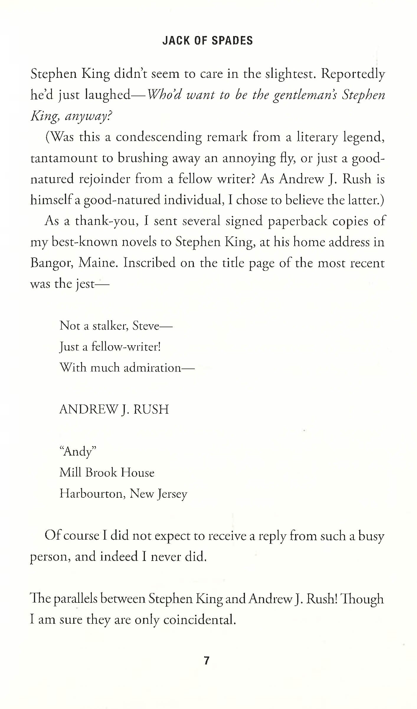 When a court order arrives accusing him of plagarism, Rush fears his secret may be exposed. And unbidden, in the back of his mind, the Jack of Spades starts plotting his survival.