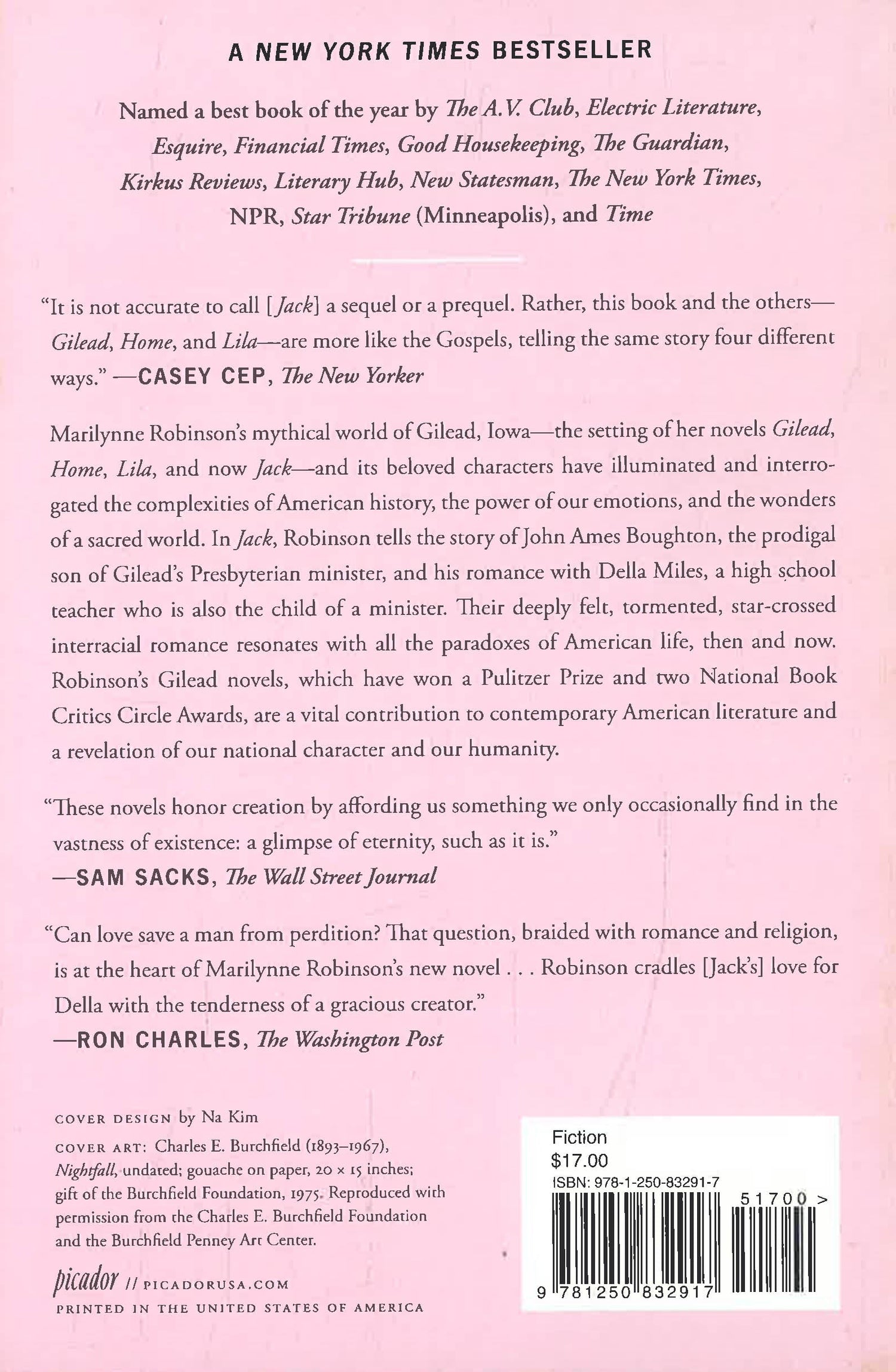 Jack is Robinson's fourth novel in this now-classic series. In it, Robinson tells the story of John Ames Boughton, the prodigal son of Gilead's Presbyterian minister, and his romance with Della Miles, a high school teacher who is also the child of a preacher. Their deeply felt, tormented, star-crossed interracial romance resonates with all the paradoxes of American life, then and now.
