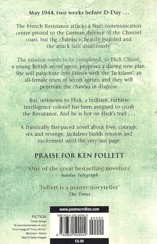 Two weeks before D-Day, the French Resistance attacks a chateau containing a telephone exchange vital to German communications - but the building is heavily guarded and the attack fails disastrously. Flick Clairet, a young British secret agent, proposes a daring new plan: she will parachute into France with an all-woman team known as the 'Jackdaws' and they will penetrate the chateau in disguise. But, unknown to Flick, Rommel has assigned a brilliant, ruthless Intelligence colonel, Dieter Franck, to crush the Resistance. And Dieter is on Flick's trail...From Ken Follett, the master storyteller and best-selling author of Eye of the Needle and Code to Zero comes this exciting thriller, set against the menacing backdrop of the Second World War and crackling with suspense and action. Jackdaws is an irresistible novel of the Resistance and of love, courage and revenge.