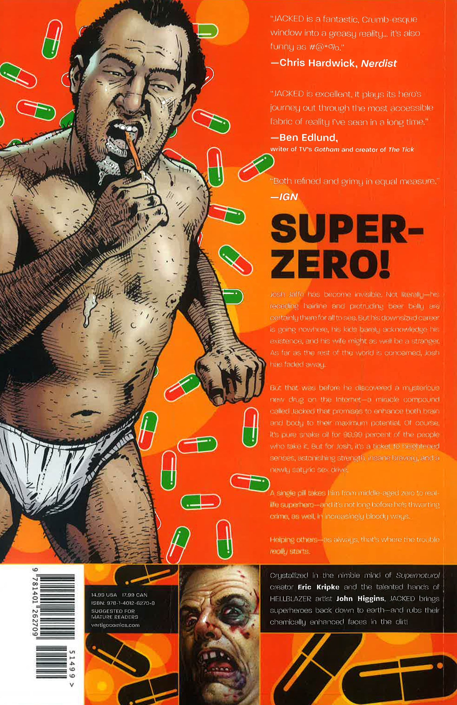 Crystallized in the nimble mind of Supernatural creator Eric Kripke and the talented hands of HELLBLAZER artist John Higgins, JACKED brings superheroes back down to earth—and rubs their chemically enhanced faces in the dirt!