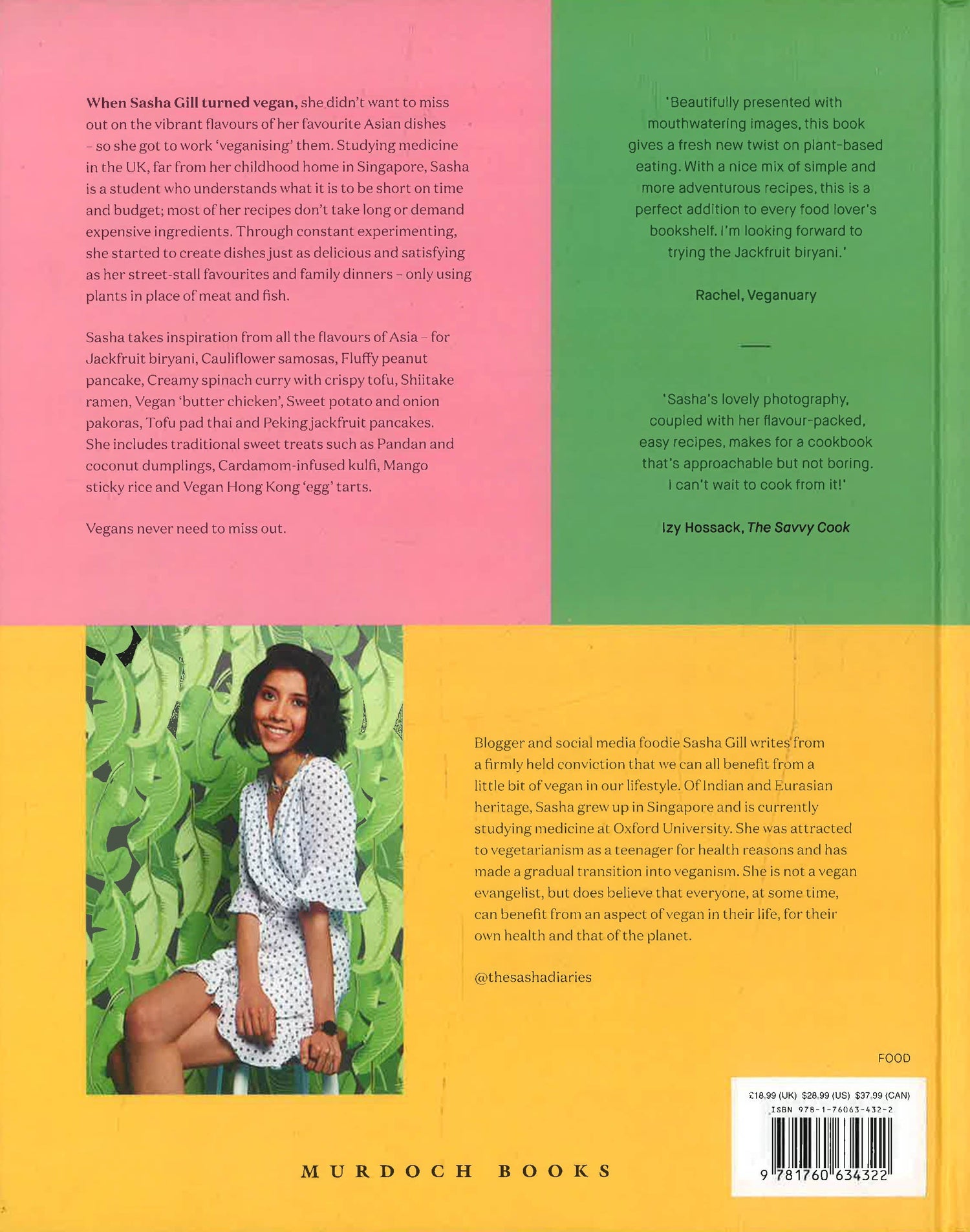 A modern way to dine: Jackfruit and Blue Ginger is more than a vegan recipe book, it is a true collection of Asian favourites with a vegan twist. Perfect for fans of books such as Plenty, Bosh!, and Eat Vegan. Vibrant Asian flavours: When Sasha Gill turned vegan, she didn't want to miss out on the vibrant flavours of her favourite Asian dishes; so she got to work 'veganising' them. Studying medicine in the UK, far from her childhood home in Singapore, Sasha is a student who understands what it is to be short on time and budget; most of her recipes don't take long or demand expensive ingredients. Through constant experimenting, she started to create dishes just as delicious and satisfying as her street-stall favourites and family dinners; only using plants in place of meat and fish. Sasha takes inspiration from the flavours of Asia. Enjoy her recipes for: * Jackfruit biryani * Cauliflower samosas * Fluffy peanut pancakes * Creamy spinach curry with crispy tofu * Shiitake ramen * Vegan 'butter chicken' * Sweet potato and onion pakoras * Tofu pad thai * and, Peking jackfruit pancakes