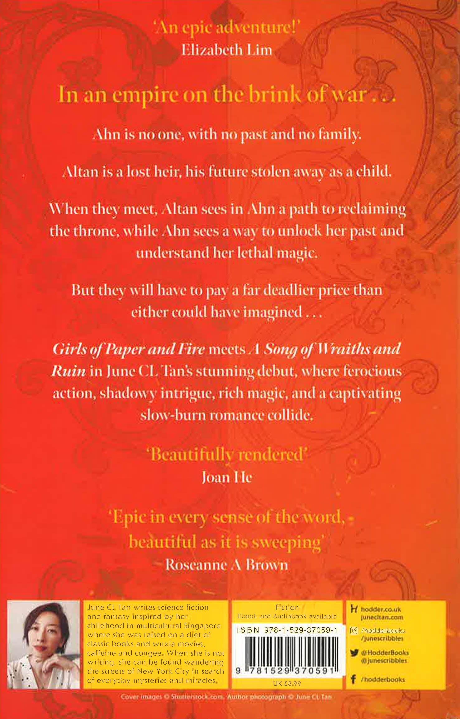 Girls of Paper and Fire meets A Song of Wraiths and Ruin in June CL Tan’s stunning debut, where ferocious action, shadowy intrigue, rich magic, and a captivating slow-burn romance collide.
