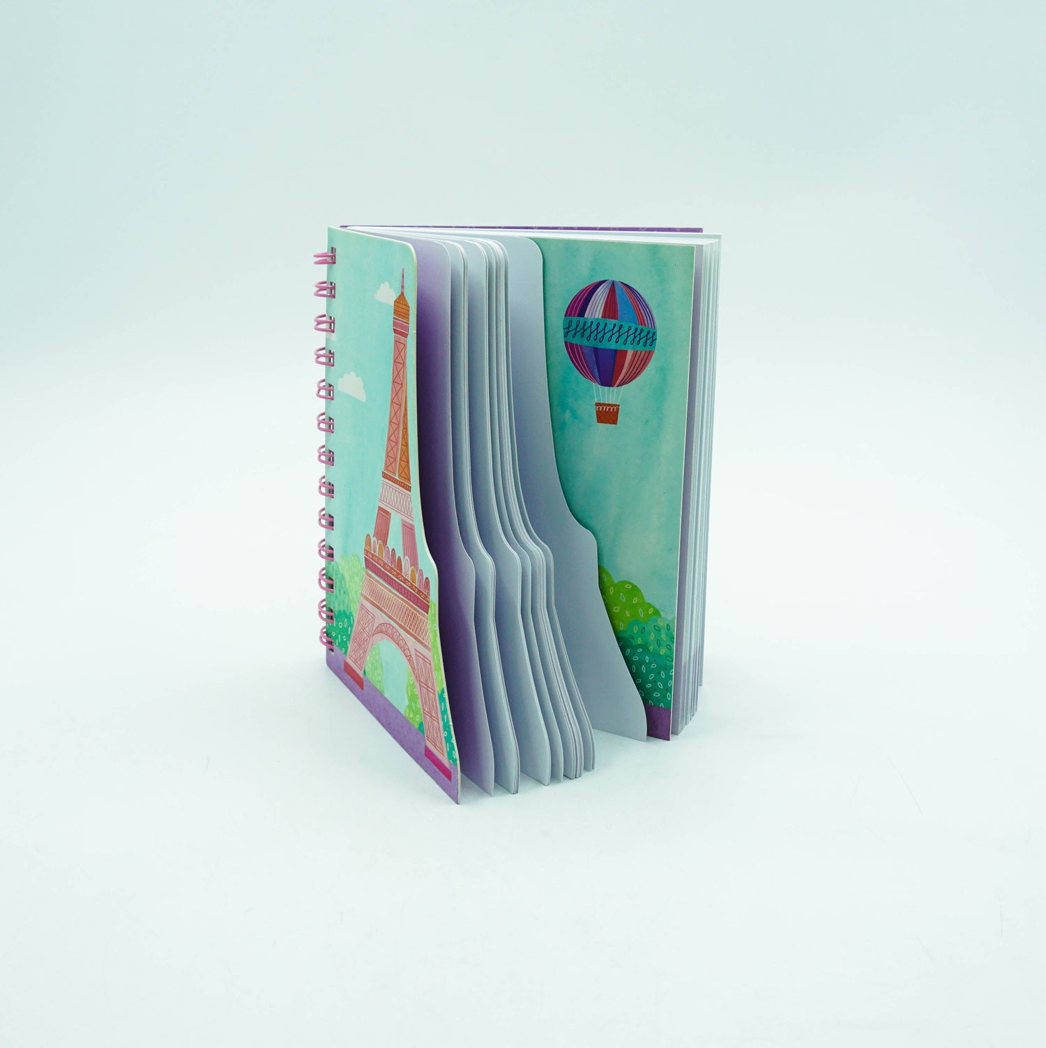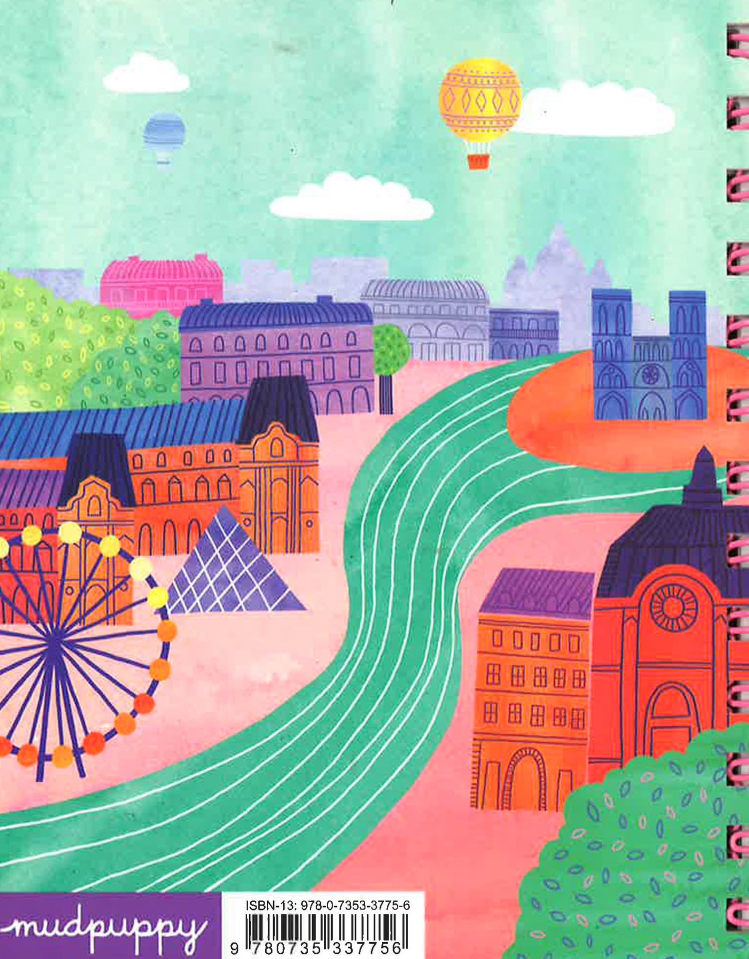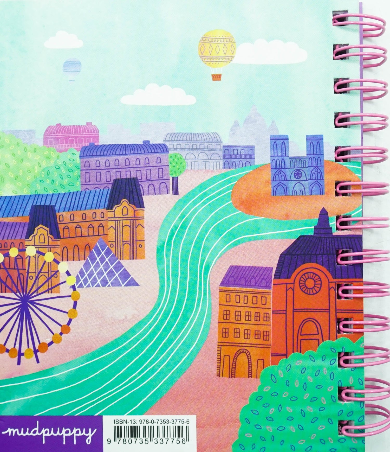 Encourage literary and artistic creativity with a two section J'Adore Paris! Layered Journal from Mudpuppy. The front section is die cut blank sketch paper; the back section is lined writing paper, for 120 pages in all. Illustrations of the Eiffel Tower and a hot air balloon are by Bella Pilar.