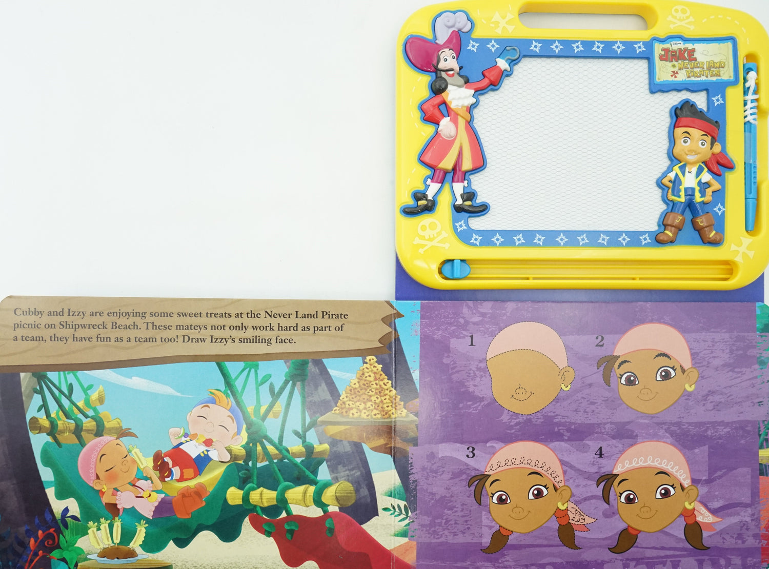 Ahot, mateys! Join Jake and the Never Land Pirates for an exciting high-seas adventure in drawing! The magnetic drawing pad is erasable, so you can enjoy the book again and again.
