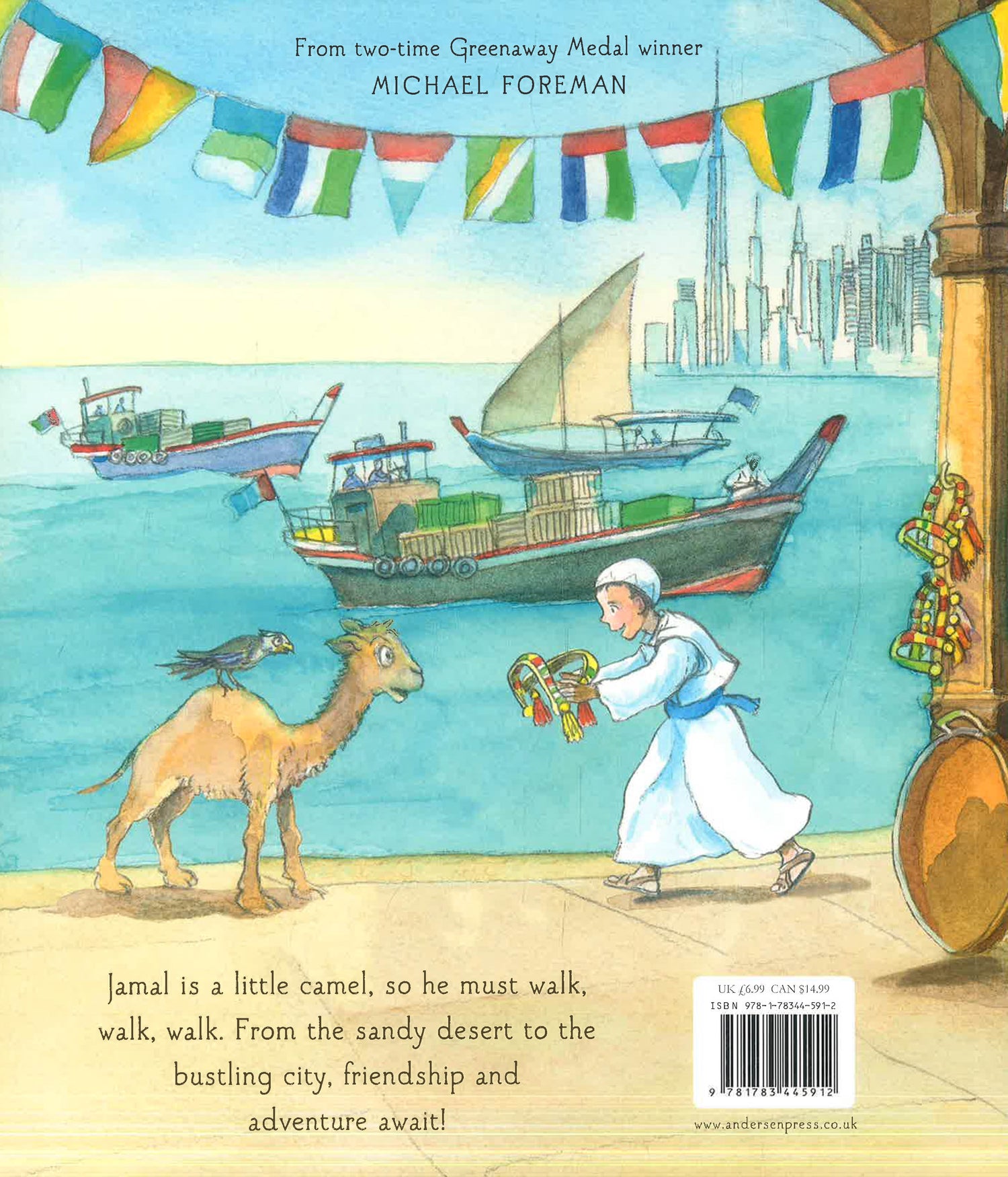 Jamal is a little camel so he must walk, walk, walk through the desert. One day he becomes separated from his friend, the boy, but a wise falcon helps to reunite them. They go on to explore the city and its exciting sights and sounds. A modern tale of friendship and adventure from the twice Greenaway Award-winning author/illustrator, Michael Foreman.